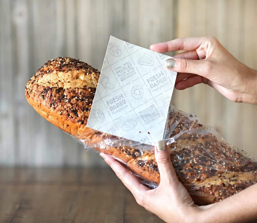 NATURALLY KEEP FOOD FRESH – FRESHPAPER Food-Saver Sheets for Bread & Baked Goods are 100% BPA-free, food-safe, -free, and plastic-free. Scientifically proven, patented product infused with organic that naturally extends the life of fresh baked goods for up to 2-4 times longer. SAVE MONEY – FRESHPAPER reduces costly food spoilage and lets you buy & fresh breads without preservatives. Each package contains 8 Reusable FRESHPAPER Food-Saver Sheets for Bread & Baked Goods. Each sheet keeps working for a month or until the distinctive maple-like scent fades. Save money & enjoy fresh baked goods for longer. EASY TO USE FLEXIBLE DESIGN - Just add FRESHPAPER to any bread bag, container, bread box etc. to preserve your baked goodies for up to 2-4 times longer. Ideal for fresh bagels, cupcakes, baguettes, muffins, quick breads, and other pastries. They can even be cut into custom sizes to fit small containers. SUPPORTS A HEALTHY LIFESTYLE- By extending the life of your fresh breads and baked goods up to 2-4 times longer, FRESHPAPER makes it easier to maintain a healthy lifestyle. Eating healthy can be hard, so take the out of home baking, meal prep & fresh food storage with easy-to-use FRESHPAPER sheets. ECO-FRIENDLY PROVEN SOLUTION – FRESHPAPER is the only patented, food saver product made with organic on the market. Proudly made in the USA. Each sheet is biodegradable, compostable, and recyclable and helps reduce global food waste. As seen on TV and QVC. Packaging may vary