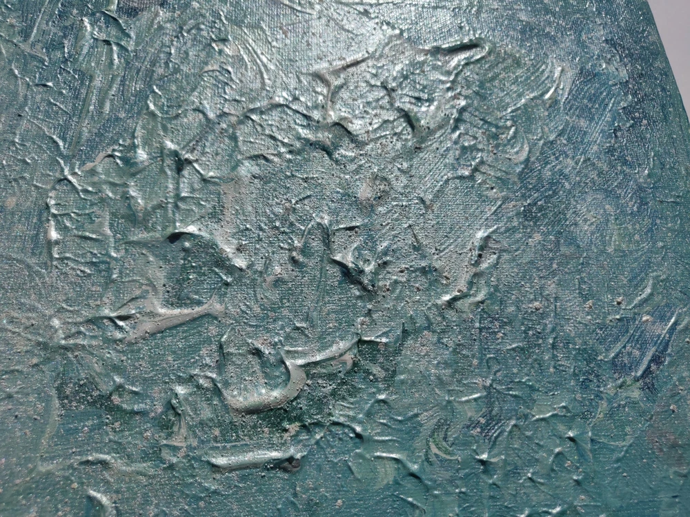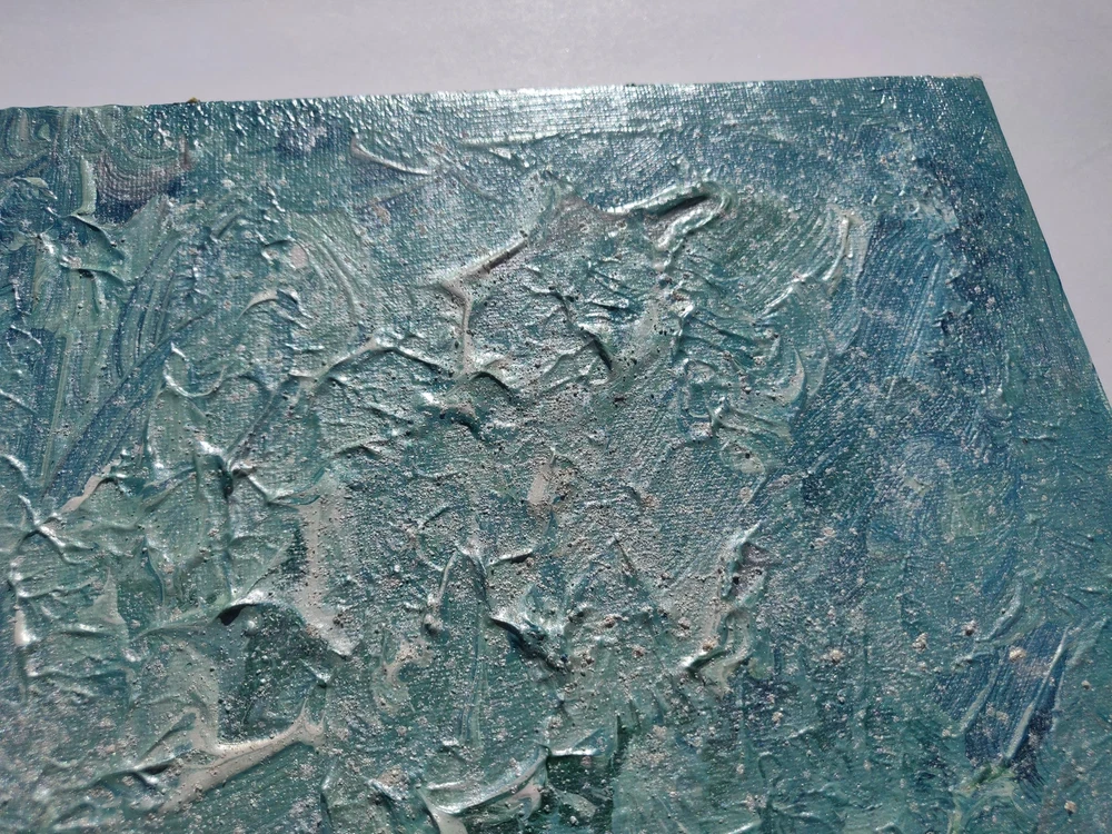 FROSTED - ICE is part of the frosted collection from the summer of 2020. It is a blue-centric piece, with ice blue tones and frosty dustings of pearly white mica dust. The focus is the raised, ridged organic texture of the piece. It is painted by hand by the artist. This is an original piece, created in June 2020. Please note colors may vary slightly from the photos versus the original, due to different color settings on displays. Please contact me if you would like to see a video or additional photos of the piece. Please note you are buying the physical painting only; the artist retains all copyrights to the work.