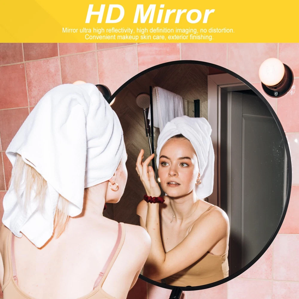 Round Mirror: Wall-mounted mirror with a diameter of 24 inches. 90% of the glass, the mirror back with high viscosity anti-shatter film treatment, even if the impact of external forces, can prevent the broken glass splash. 10% of the frames are made of metal, which is not easy to deform, durable and more protective. High Definition Imaging: Mirror double-layer aluminum plating to prevent oxidation. Ultra high reflectivity, true mirror image. Clear reflection without visual distortion. The use of angled glass mirrors effectively enhances the stereoscopic effect. It is convenient for you to make up, protect your skin, organize your appearance, etc. Multi Purpose: 24 inch wall-mounted mirrors, simple and atmospheric design. Suitable for living rooms, bathrooms, entrances, corridors, and dressers. Perfect size for everyday needs. Convenient Installation: You only need to fix the complimentary expansion screws in a suitable position on the wall to hang the mirror. Easy installation. Warm Reminder: This product is fragile. In order to prevent wall mounted mirrors from being damaged during transportation, they have been safely packaged in a box. If damage occurs during transportation due to uncontrollable factors. You can contact us, and we will respond promptly and help you solve the problem.