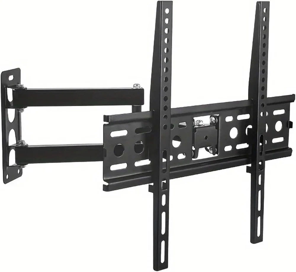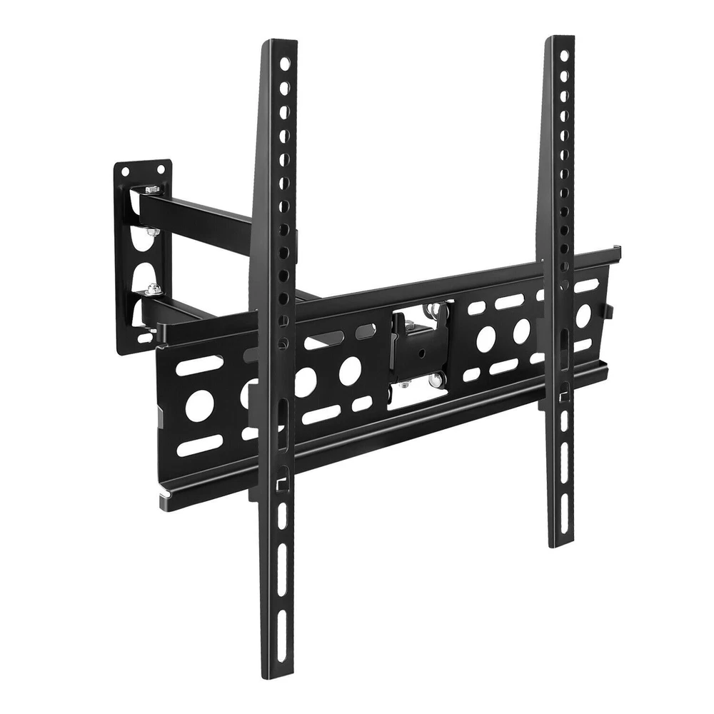 This Full-motion mount accommodates most 26"-55" flat panel TVs up to 77lbs. This mount extends out 14" from wall and allows full-motion capabilities. Full motion allows maximum flexibility — tilts and swivel your TV for easy viewing from any seat in a room. Its post-installation leveling adjustment ensures the TV is perfectly positioned on the wall. Integrated cable management system keeps cables organized and protected. FITS MOST SCREEN SIZES 26" - 55" Screen size support used as a general guideline only. Actual fit is determined by the VESA measurements and weight capacity of this mount. VESA measurements are your mounting hole distance on the back of your TV Supports TVs up to 77lbs (Triple Tested) Includes all mounting hardware required to install mount onto wall. Common screws included to install TV onto mount. These included screws will fit 95% of TV on the market. If you TV requires special screws, they will need to be purchased separtly from a hardware store. TV tiles +3/- 15 degrees Swivels freely from side to side VESA mounting compliant Max TV to wall distance: 14" Saftey Retaining Screw Color: Black Single stud mountable. Cable Management Great for corners