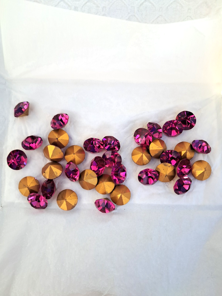 FULL PACK SWAROVSKI RHINESTONES 48 SS GOLD FOILED/FUCHSIA (36 PCS) ART #1100