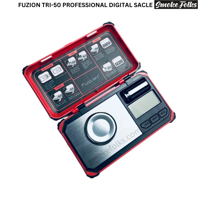 FUZION TRI-50 X 0.001G PROFESSIONAL DIGITAL SCALE – PRECISION MEETS STYLE The Fuzion TRI-50 is the perfect blend of functionality, precision, and vibrant style. Designed for professionals and enthusiasts alike, this scale offers ultra-fine accuracy of 0.001 grams while supporting six versatile weighing modes. Compact, lightweight, and available in four stunning colors (red, green, orange, and blue), the TRI-50 is as reliable as it is stylish. KEY FEATURES High Precision Performance: Delivers outstanding accuracy with a readability of 0.001 grams and a maximum capacity of 50 grams , perfect for weighing jewelry, powders, and more. 6 Weighing Modes: Easily switch between grams (g), ounces (oz), troy ounces (ozt), pennyweight (dwt), carats (ct), and grains (gn) to meet diverse weighing needs. Tare Full Capacity: Effortlessly weigh items by subtracting the container weight using the tare function , allowing full capacity use. Energy-Saving Auto-Off Feature: Automatically shuts off after 180 seconds of inactivity to preserve battery life. Compact and Portable: Measuring 5.6″ x 3.3″ x 0.9″ , the scale is easy to carry, store, and fit into your workspace or travel kit. Vivid Color Options: Choose from red, green, orange, or blue , adding a stylish touch to your workspace or personal setup. LCD Display with 4.5 Digits: A clear, bright display ensures easy readability, even in low-light conditions. SPECIFICATIONS Feature Details Capacity 50 grams Readability 0.001 grams Weighing Modes g, oz, ozt, dwt, ct, gn Tare Function Full Capacity Auto-Off Timer 180 seconds Net Weight 174 grams Dimensions 5.6″ x 3.3″ x 0.9″ (compact design) Power Supply 2 AAA batteries (included) Calibration Weight 50 grams (included) Display LCD with 4.5-digit clarity Available Colors Red, Green, Orange, Blue WHAT’S INCLUDED IN THE BOX? Fuzion TRI-50 Digital Scale 50g Calibration Weight for easy recalibration 2 AAA Batteries to power the scale out of the box User Manual WHY CHOOSE THE FUZION TRI-50 DIGITAL SCALE? Unmatched Precision: Perfect for weighing tasks requiring fine accuracy up to 0.001 grams . Stylish Design: Available in four vibrant colors , it adds a splash of personality to your workspace. Compact & Portable: Lightweight and travel-friendly, making it ideal for professionals on the go. User-Friendly Features: Tare function, auto-off, and clear LCD display simplify your weighing experience. Reliable Build: Includes a calibration weight and operates on AAA batteries for long-lasting use. With the Fuzion TRI-50 X 0.001G Professional Digital Scale , you get precision, style, and portability in one perfect package. Elevate your weighing experience today!