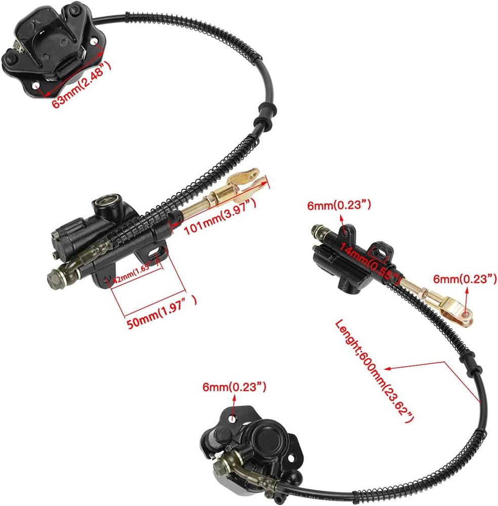 FVRITO Rear Foot Brake Master Cylinder Caliper Assembly for 50cc 70cc Black Product Details Manufacturer: FVRITO Brand: FVRITO Item Weight: 2.33 pounds Package Dimensions: 8.66 x 5.87 x 4.41 inches Item model number: SCB002-XJL Manufacturer Part Number: SCB002-XJL 【Fitment】for 50cc 70cc 90cc 110cc 125cc ATV Quad 4 Wheeler and and other chinese brand,Such as Roketa, Yamoto,Sunl, Jetmoto, Alpine, MotoTec,JCL, Peace, Coolster,Apollo,RPS,Vitacci Rider ,ICEbear , baja,Tao Tao, kazuma ,KAYO,Lifan, Buyang ,Electra,Coolsport,Baja,AIM-EX,Panther,Redcat, MDI,Eagle,and etc. 【Fitment】:known Compatible with for, Taotao Boulder B1/110B/125D, kazuma 125, Coolster 3050C 3125R 3050D 3125X R8 3050HD, ARMY 125 4t, FLEETWOOD 125, Sej 125, Apollo Focus 125, KAYO BULL 125 PAK125-3, NITRO Grizzly 125, Nitro Torino 125, RPS 125 Raider 6/7 Kids, Spartan 007 125, Vitai Rider 7/9 125, KXD 125 , UCM Thor 125 , Vitai Hawk 110, Veloz-06 110 Kids, Quad Bamboo 110, Vendo cuatrimoto 110, ICEbear 110, MotoTec 110, Atv Rock 110, Mountopz 110, ATV Crusade 110, X-PRO Bolt 110. 【Size】:Brake Cylinder Mounting Hole Distance: 42-50mm / 1.65-1.97 inches, Brake Caliper Mounting Hole Distance: 63mm / 2.48 inches, Brake Oil Pipe Size: 600mm / 23.62 inches. 【Package Contents:】 1 x Brake Assembly, 3 x Tie, 1 x Extra brake pads, 1 x Fuel Filter.