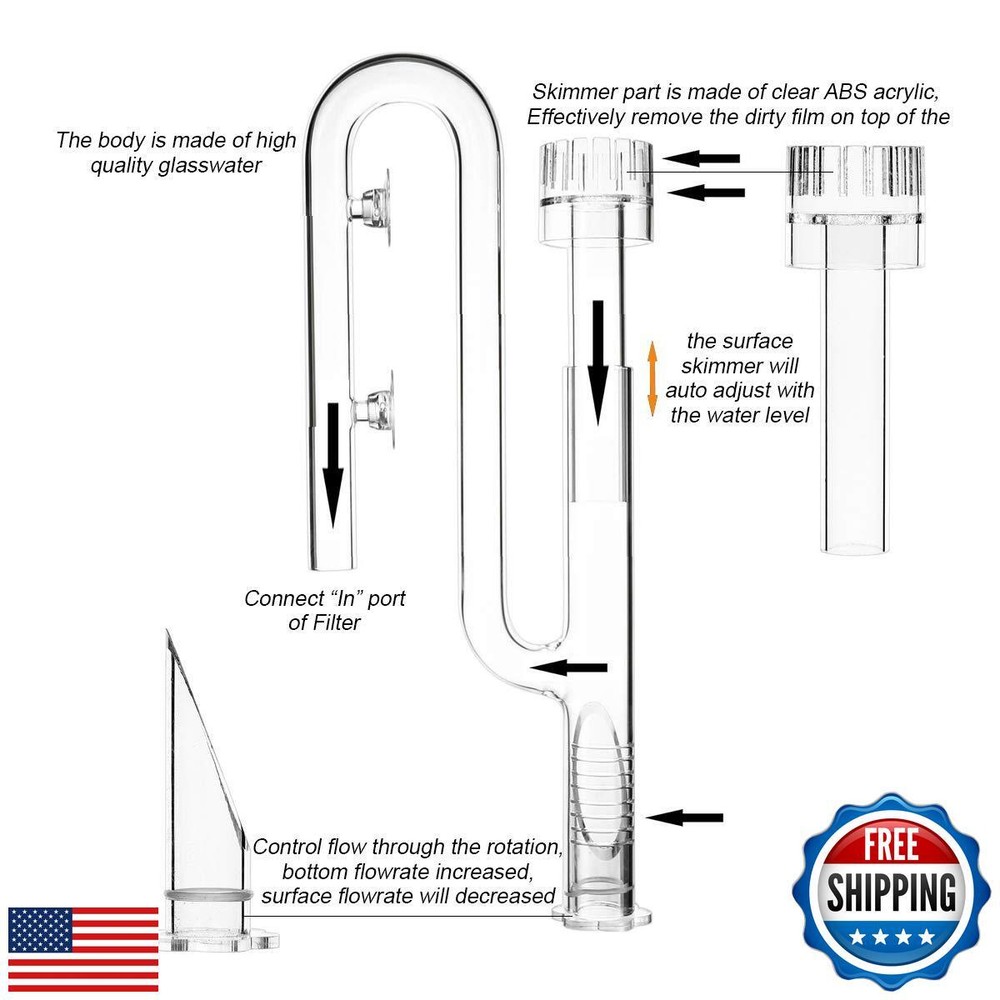 FZONE Aquatic Glass Lily Pipe Set with Lily Skimmer Inflow and Lily Outflow for Aquarium Filter 1/2''(12/16mm) Tubing Features Set Includes skimmer lily Inflow pipe and outflow pipe. Made of the highest quality laboratory-grade borosilicate glass; the floating part and the unit for adjusting the ratio between surface extraction and intake in the lower part are made of highly transparent and durable acrylic Skimmer lily Inflow pipe will auto adjust with the water level; surface skimmer effectively remove the dirty film on top of the water; water surface flow rate can be adjusted by rotating the bottom part Lily outflow pipe delivers clean water from the filter to the aquarium (outflow) Attention: 13mm outer diameter suitable for tubing of 1/2''ID(12mm internal / 16mm external); package included: 1x lily pipe outflow, 1x lily skimmer Inflow, 4x suction cups Shipping Free & Fast Shipping: We offer free shipping to most of the USA with a normal delivery time of 3-7 days. However, due to the current situation, additional delivery time (up to 3 weeks) may be required for some items. Alternative Carriers: We may use alternative carriers (e.g., USPS, FedEx, UPS) to ensure your package arrives safely and on time. Due to the use of multiple carriers, we are unable to provide a tracking number automatically. Handling Time: Orders are processed and shipped within 1-2 business days of receiving cleared payment. Shipping Restrictions: Shipping to Alaska, Hawaii, Puerto Rico, Guam, and other US territories may incur shipping charges or delivery restrictions. Please contact us before ordering, or your order can be refunded/cancelled. State Restrictions: Certain items may not be shipped to California due to state regulations. Contact for Tracking Updates: If you require tracking updates or have any concerns about the delivery of your order, please feel free to contact us, and we will be happy to assist you. Return Policy 30-Day Hassle-Free Returns: If you are not completely satisfied with your purchase, you can return the item for free within 30 days of receiving it for a full refund or exchange. Easy Return Process: Contact us, and we will provide you with a prepaid return shipping label and detailed instructions. No Restocking Fee: There are no restocking fees for returns. However, the buyer is responsible for return shipping costs if the return is not due to a seller's error. Refund Processing: Refunds will be processed within 1 business day of receiving the returned item in its original condition. Payment We accept all major credit cards, PayPal, and Apple Pay for your convenience. Your payment information is secure and encrypted to ensure a safe and seamless transaction. Please complete your payment within 3 days of purchase to avoid any delays in shipping. Feedback Your feedback is extremely important to us. We strive to provide the best products and customer service possible. If you are satisfied with your purchase, please take a moment to leave us a positive review. If you have any concerns or issues with your order, please contact us before leaving negative feedback. We are committed to resolving any problems and ensuring your satisfaction. Contact Us If you have any questions or concerns, please feel free to reach out to our customer support team. You can contact us through the eBay messaging system. We are available Monday to Friday, 9:00 am to 5:00 pm EST, and we will do our best to respond to your inquiry within 24 hours. Thank you for supporting our small family business!