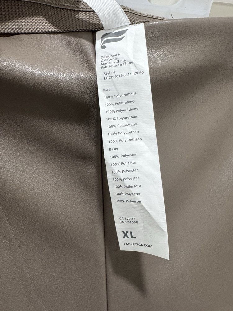 Fabletics Women's Vegan Leather Pull-On Leggings Willow Bark XL NWT Stretch