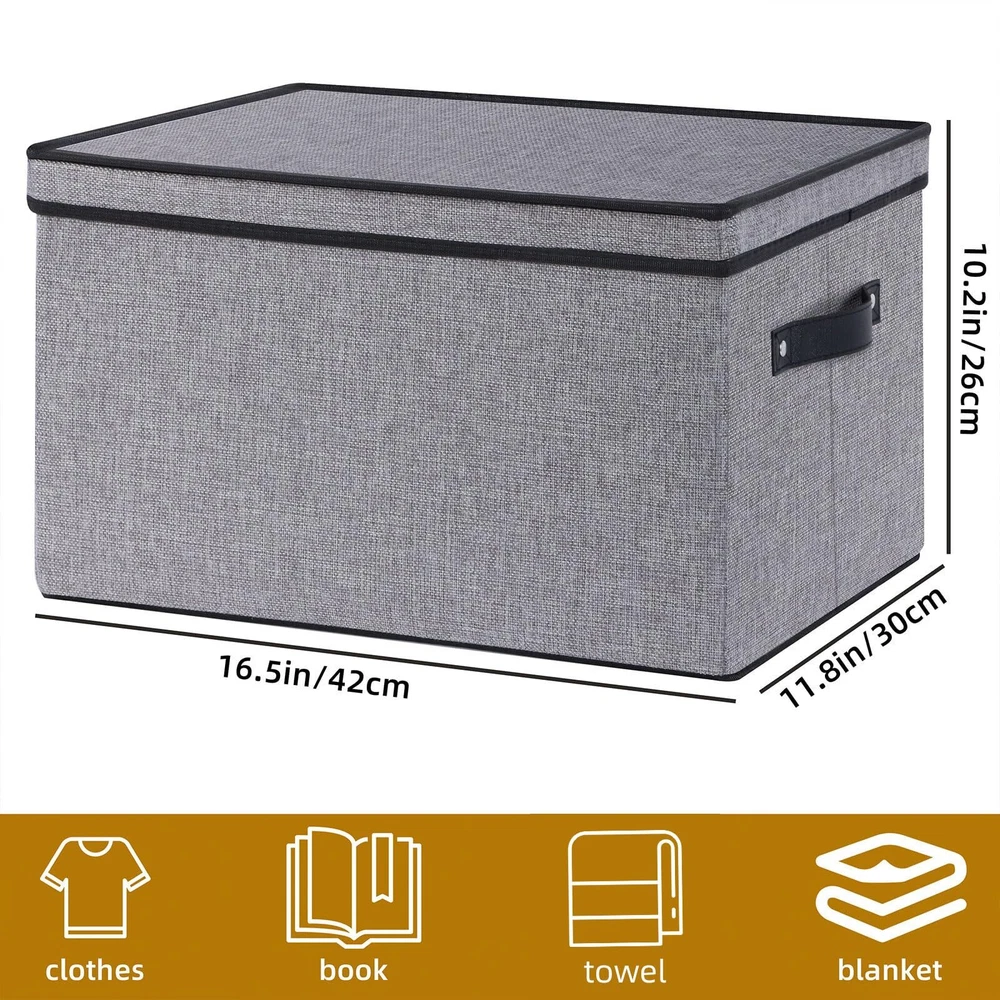 Sturdy Structure: The rectangle storage bins will exceed your expectations for quality. There are stiff cardboards inserted in the bottom and all side walls for support allowing these storage cubes and keep them standing and structural integrity Collapsible Design: The fabric storage cubes can be folded flat when not in use to save space or transport. Fabric baskets are easy to clean, simply dust with a soft dry cloth Durable Enough: Collapsible storage bins with handles are made of high-quality linen fabrics, and the inner layer is made of non-woven fabric, which is durable and strong enough to hold your items. 2 faux leather handles make it easy to pull or carry Multiple Sizes Available: Multiple colors and sizes to meet the storage needs of most households. You can choose different sizes of boxes to combine and store, expanding your storage space Multi-Purpose: Sturdy cube boxes shelves organizers provides a solution to meet many storage needs; Used to organize and store clothes, shoes, office supplies. The ideal organization baskets can be easily placed in the shelf, closet, bedroom
