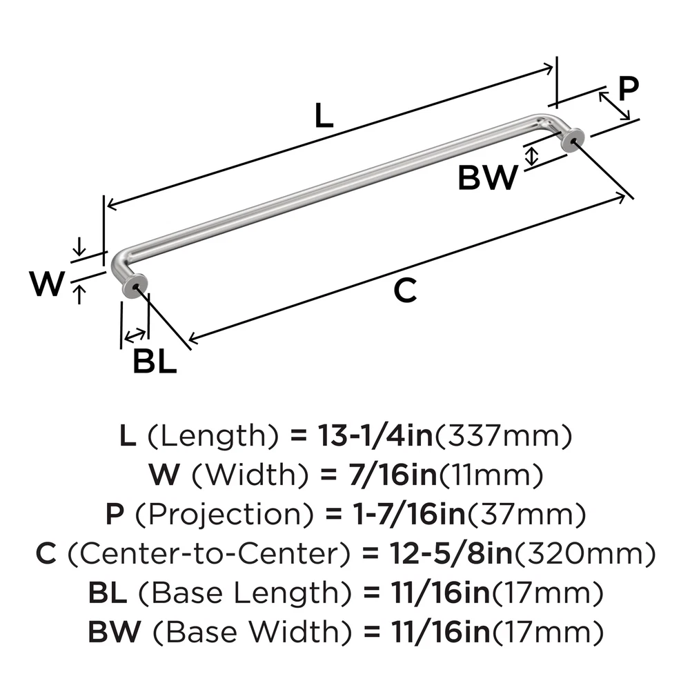 The BP3696626 Factor 12-5/8 inch (320mm) Center-to-Center Pull is finished in Polished Chrome. Elevating the basic wire pull, the Factor collection features gentle curves and pedestal feet that create a casual, approachable silhouette. With its shimmering mirrorlike nature, the slightly cool blue undertones of chrome enhance the surface of any product. Founded in 1928, ’s award-winning home solutions including decorative and functional cabinet hardware, bath accessories, decorative hooks and wall plates have built the company’s reputation for chic design accessories that inspire homeowners to express their personal style. offers a variety of styles and finishes at affordable prices that add the perfect finishing touch to any room. VERSATILE - Contemporary style adds an easy designer upgrade to any cabinet drawer, cabinet door or furniture piece DURABLE - High quality construction for lifelong durability CONVENIENT - Mounting hardware included for quick and easy installation - Coordinates seamlessly with finishes from popular plumbing and lighting brands DISCLAIMER - We do our best to show colors accurately, but they might look different on your screen due to individual monitor settings