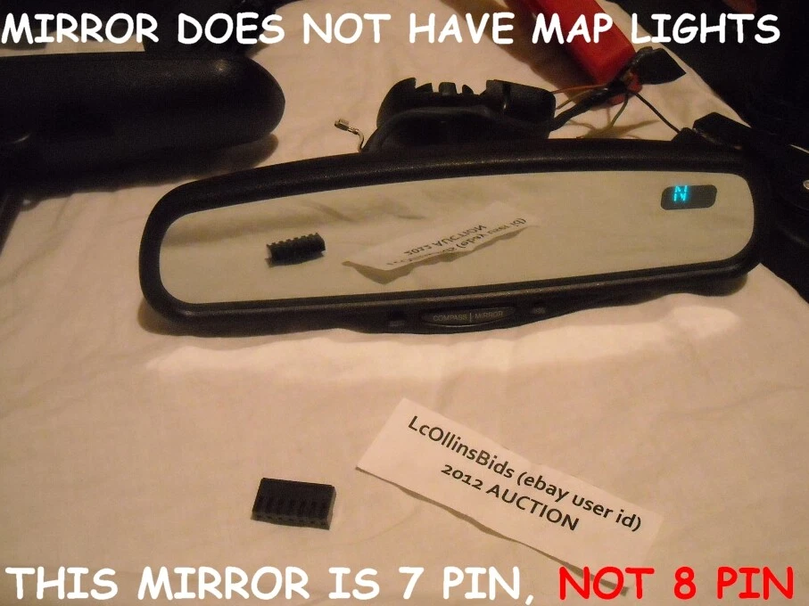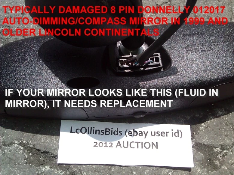 (*8 pin) = 8 PIN COMPATIBILITY. THIS MIRROR IS NOT 8 PIN. THIS MIRROR IS 7 PIN. **BEFORE MAKING PURCHASE, PLEASE VIEW ALL PICTURES & ASK ALL QUESTIONS. ALL SALES ARE FINAL. ALL SALE CANCELLATION REQUESTS (BEFORE SHIPMENT) WILL INCUR A MANDATORY ORDER CANCELLATION FEE THAT IS EQUAL TO LISTING'S SHIPPING FEE. NO EXCEPTIONS. ITEM: 1 USED TESTED FACTORY (NOT AFTERMARKET) 1995-2002 LINCOLN CONTINENTAL AUTO-DIMMING INSIDE REAR VIEW-WINDSHIELD MOUNTED 7 PIN MIRROR ( *8 pin compatible ) WITH ELECTRONIC COMPASS. IT WAS REMOVED FROM A 2002 LINCOLN CONTINENTAL. ALSO, 2002 LINCOLN CONTINENTALS HAVE TWO SLIGHTLY DIFFERENT MIRROR STYLES THAT ARE BOTH COMPATIBLE. THEREFORE, YOU MAY RECEIVE ONE THAT IS NOT AS PICTURED. BUT VERY SIMILAR. THIS *8 PIN-COMPATIBLE 7 PIN MIRROR DOES NOT CONTAIN MAP LIGHTS! MAP LIGHTS MIRROR IS LOCATED AT THIS EBAY LISTING: http://www.ebay.com/itm/221790586638 THIS MIRROR IS 7 PIN. THIS MIRROR IS NOT 8 PIN. *IT IS COMPATIBLE WITH 8 PIN CONNECTIONS. IF YOU HAVE 8 PIN CONNECTION, THIS MIRROR WILL FIT. YOU WILL NEED A BLANK 7 PIN HARNESS. IF NEEDED, IT COMES WITH A BLANK 7-PIN HARNESS. IF NEEDED, DETAILED INSTRUCTIONS WILL BE INCLUDED VIA EMAIL. IT WILL TAKE LESS THAN 2 MINUTES FOR 7 PIN CONVERSION AND DOES NOT REQUIRE ANY HARD WIRING OR ANY PERMANENT WIRING MODIFICATION WHATSOEVER. Check compatibility section. THIS MIRROR IS NOT INTERCHANGEABLE WITH OTHER MAKES AND MODELS. 1995-2002 LINCOLN CONTINENTALS ONLY! ALL SALES ARE FINAL! NO REFUNDS! NO RETURNS! NO EXCHANGES! NO EXCEPTIONS! Additional Information (VIDEO) : THREE SEPARATE VIDEOS TO VIEW FOOTAGE OF THIS MIRROR: YouTube video footage of auto-dimming and compass features of this mirror can be viewed by clicking on this link (will open in new window): http://www.youtube.com/watch?v=FxR1iYUpS5U YouTube video footage of auto-dimming and compass features of this windshield-mounted interior rear view mirror WHILE MOUNTED IN A 1997 LINCOLN CONTINENTAL can be viewed by clicking on this link (will open in new window): http://www.youtube.com/watch?v=suPm7jXo-4k YouTube video footage of auto-dimming and compass features of this mirror, while mounted in a 1997 Continental , can also be viewed by clicking on this 3rd link (will open in new window): http://www.youtube.com/watch?v=2HDE1OjNagg IF YOU NEED THIS MIRROR AND OUTSIDE DRIVER AUTO DIMMING MIRROR, THEY ARE LOCATED AT THIS EBAY LISTING: http://www.ebay.com/itm/321118501526 Before purchasing, please take a moment to view all pictures, watch all videos (if applicable), check compatibility section (if applicable), ask any relevant questions, read listing details, etc. No Warranty applies to this unit! There is no additional seller warranty. Item doesn't include any seller warranty of any kind. This is a used item that may contain scratches, scrapes, pitting, etc. All of which does not effect functionality. Although this unit has been tested and is in working condition, free of any defects in materials and workmanship, this is an "as is" sale. No returns whatsoever. All sales are final. Before purchasing, please make sure that this is the correct part. If not, you will be unable to return it. All courier-related issues will be with USPS, FedEx, or UPS. One of which will be hired to safely transport this item to you. This includes, but not limited to, delay in delivery, damage in transit, etc. For more information about USPS policies, please visit www.usps.com . UPS policies, please visit www.ups.com . FedEx policies, please visit www.fedex.com . * Please see additional information below about lost/damage/missing shipment requirements for replacements. By purchasing this item, you fully agree with all policies. * Prior to shipment, all items are recorded with hidden watermark serial numbers for tracking and quality control purposes. All items are shipped in tested working condition. If received otherwise, it is consider as "damaged." If reported by buyer as damaged, report must be made within 12 hours of delivery time. Also, damaged part with matching hidden watermark serial number and original packaging must be released to USPS/FedEx/UPS for inspection and insurance purposes. It must be released within 24 hours. If reported by buyer as as lost, stolen, missing, etc., and package shows a delivery date to buyer's address, a police report must be filed by buyer. The police report must be faxed or emailed to us within 24 hours of actual delivery date or expected delivery date. The police report must bear the officer's name, location, day time phone number, signature, hidden watermark serial number (we will disclose this to you). In addition, police report must bear the buyer's information (name, address, etc.), signature, statement, etc. Buyer must also comply with USPS/Fed Ex/UPS insurance claim polices as well. No investigation will be initiated unless the above actions have been performed by buyer and processed by the aforementioned. Buyer's remorse is considered fraud (buying an item with the intention of returning or using and returning for refund). Returning a different item from one bearing our unique hidden watermark is considered fraud (all of our items contain a unique hidden watermark). All suspected fraud cases will be immediately reported to, but not limited to FBI, buyer's local law enforcement, global online fraud data base, and courier's fraud dept (USPS, FedEx/UPS). IC3 report, etc, will be filed with FBI immediately. Victim's crime report will be filed with buyer's local law enforcement agency, immediately. Buyer's financial institution that was used to make payment will also be notified immediately. By purchasing this item, you fully agree with all policies. Failure to comply, exceed amount of time to report problem, etc, will void all buyer's rights under this item. NO EXCEPTIONS! **After purchase, item is immediately processed (pulled and packaged by paid personnel). If buyer sends request for cancellation before shipment, seller exercises the exclusive option to cance