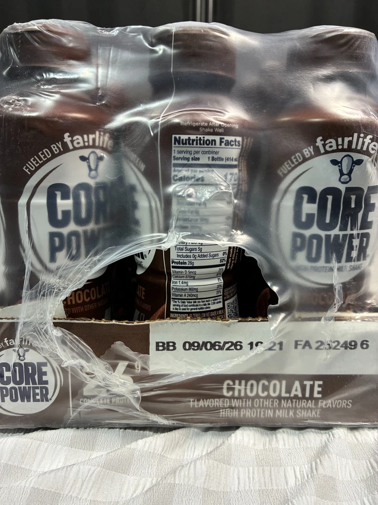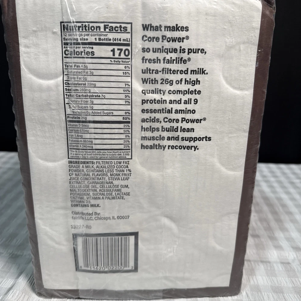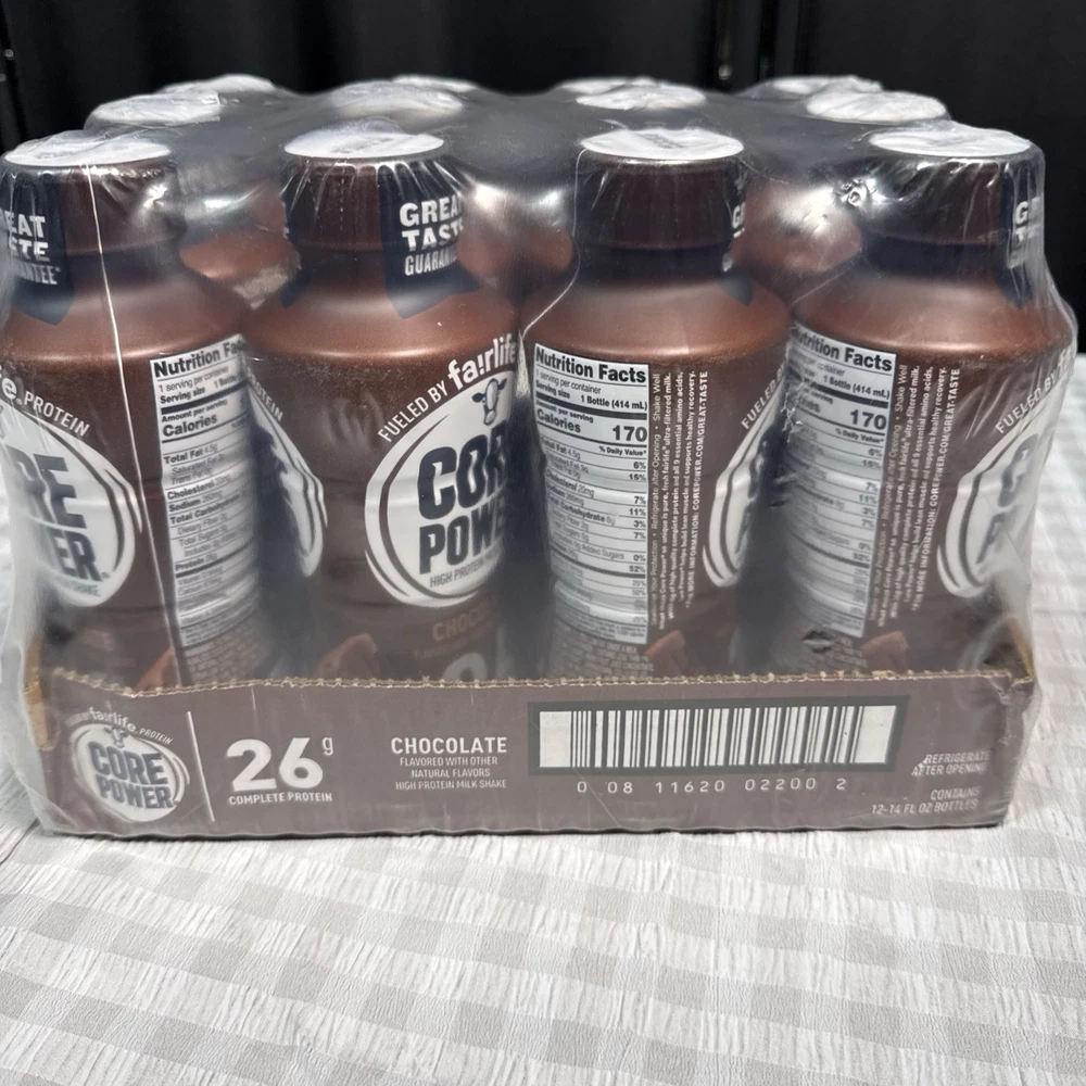 Champion Your Recovery with Fairlife Core Power Chocolate (12-Pack) Fuel your fitness goals with the creamy, delicious taste of real chocolate milk combined with high-performance nutrition. Core Power by Fairlife is made from ultra-filtered milk, providing 26g of high-quality complete protein in every bottle to help you refuel, rebuild, and rehydrate after every workout. Key Features: • High-Quality Protein: 26g of complete protein per bottle, containing all 9 essential amino acids to support muscle recovery and growth. • Fueled by Fairlife: Made with real, ultra-filtered milk for a smooth, rich texture without the chalky aftertaste of standard protein powders. • Post-Workout Hydration: Naturally occurring electrolytes and minerals help replenish your body after intense physical activity. • Dietary Friendly: 100% lactose-free and gluten-free, making it easy on the stomach for those with sensitivities. • Convenient Case: You are purchasing a full factory-sealed case of 12 (14oz) bottles—perfect for your gym bag, office, or grab-and-go nutrition.