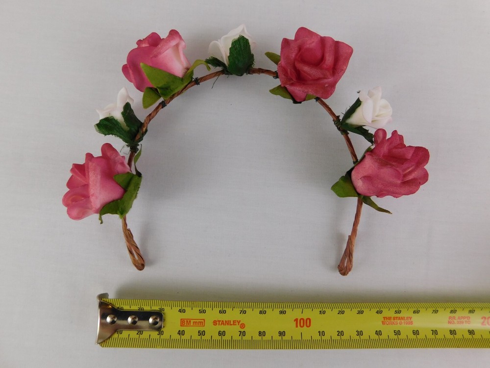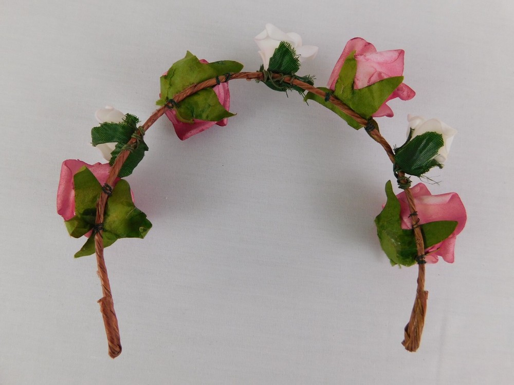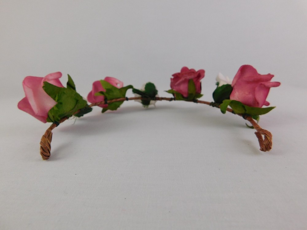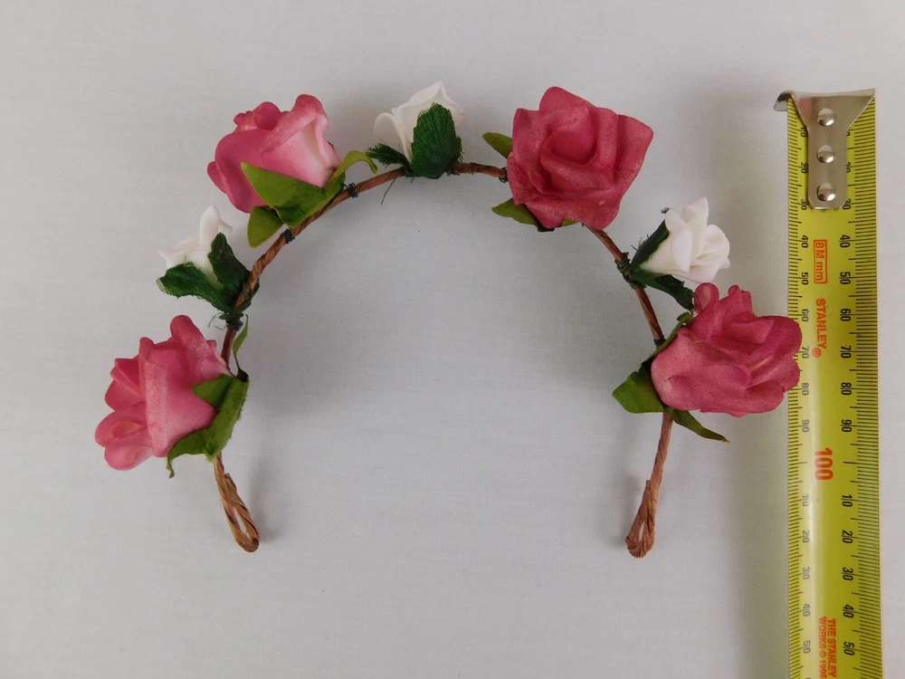 Add a fairy touch to your hairstyle with this handmade flower tiara. Designed with a natural look, its rose design is perfect for weddings, parties, and all types of occasions. Made with eco-friendly materials such as faux twig, foam, wire and paper fibre, this tiara is suitable for all hair types. This headpiece is perfect for women who love the fairy character and want to add a touch of magic to their look. The pink colour of the tiara is eye-catching and will surely make you stand out in any event. Get ready to feel like a fairy with this beautiful hair accessory!