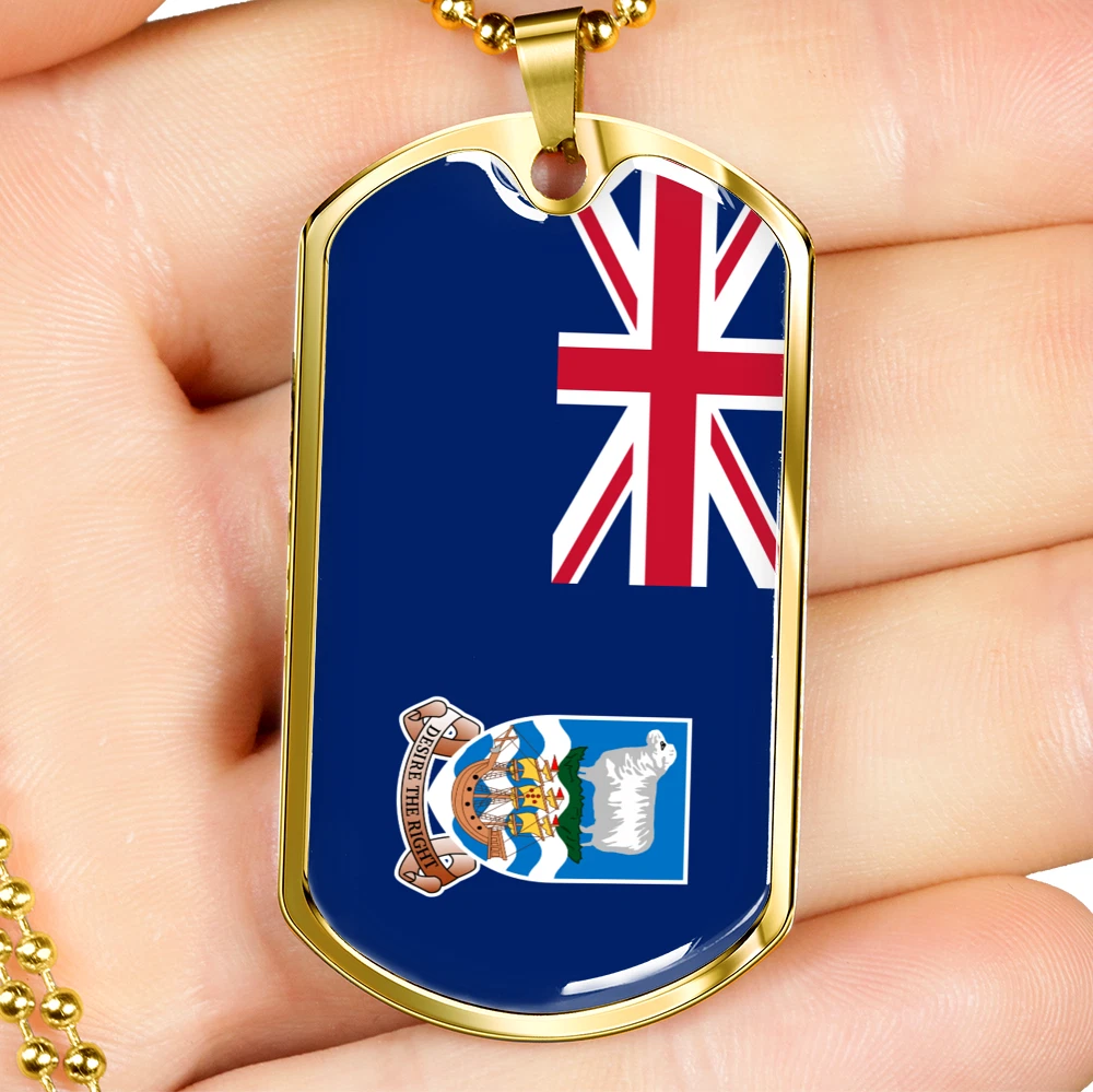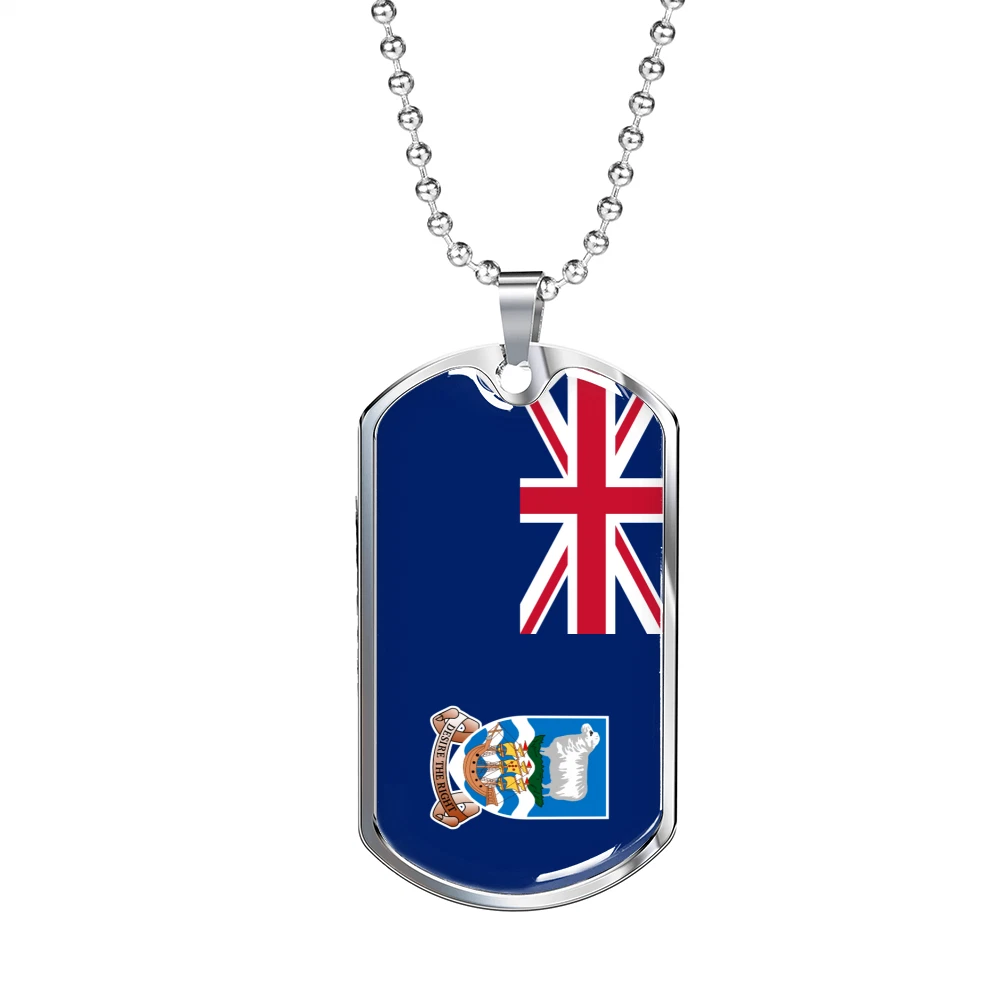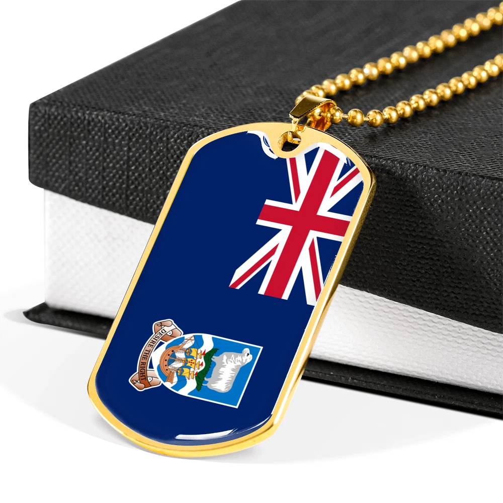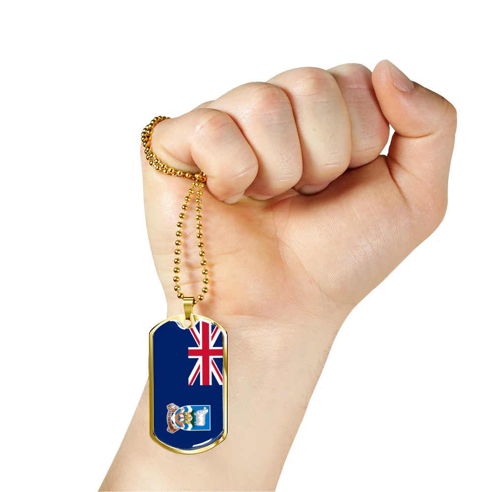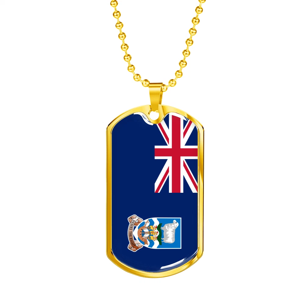Falkland Island Flag Necklace Stainless Steel or 18k Gold Dog Tag 24" Chain