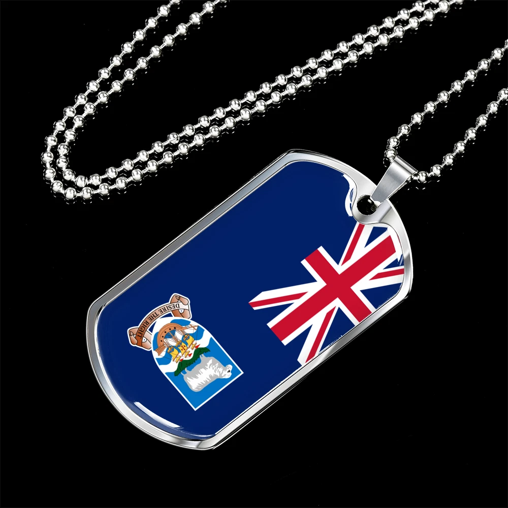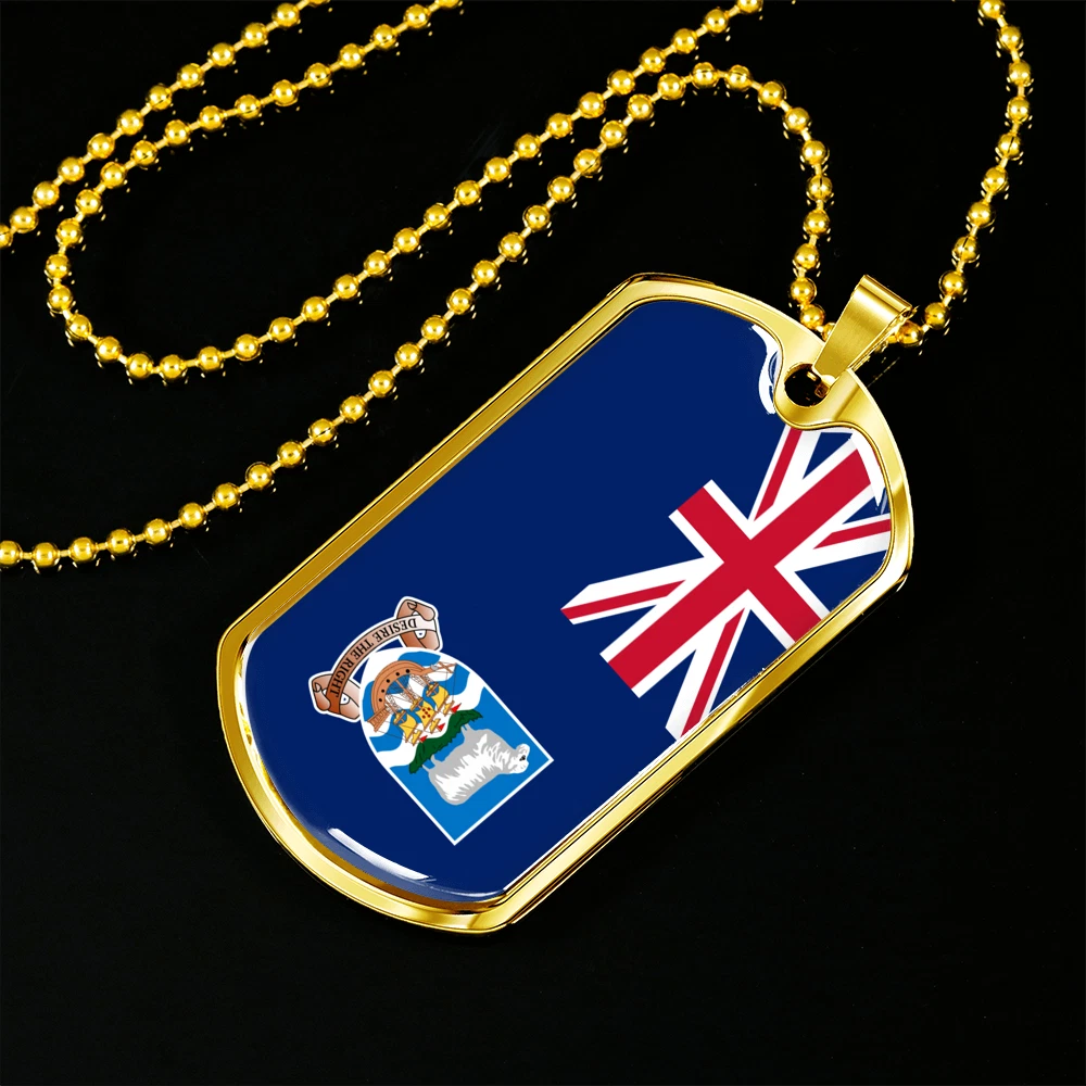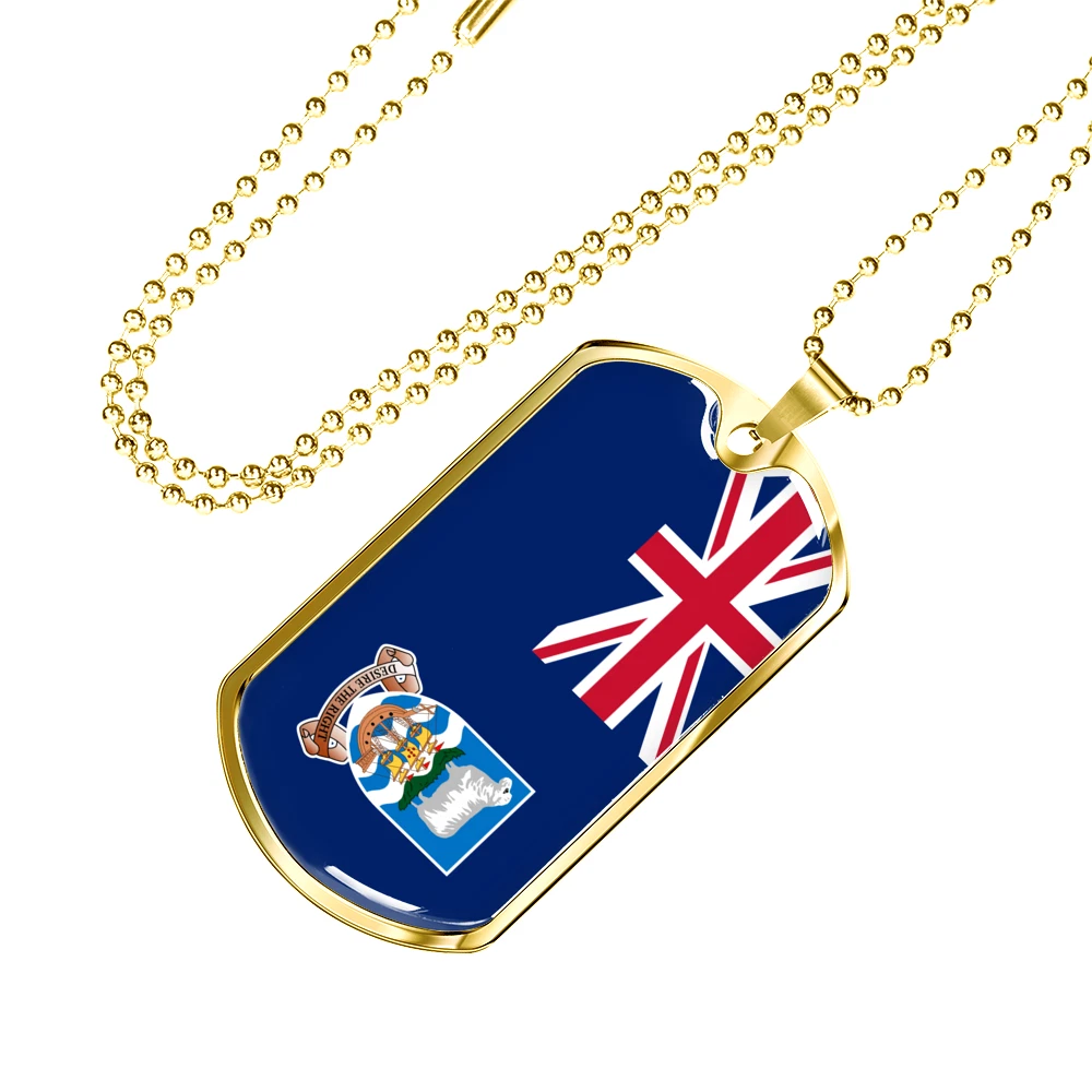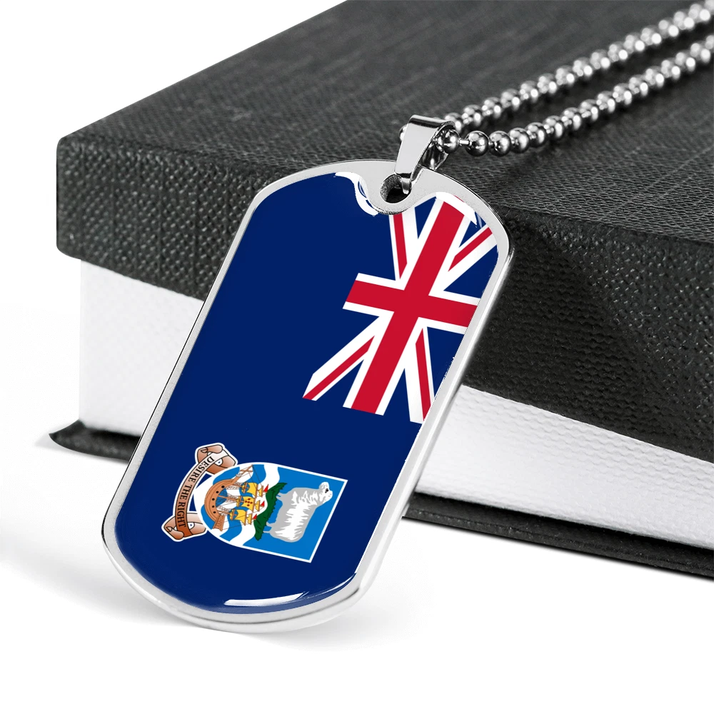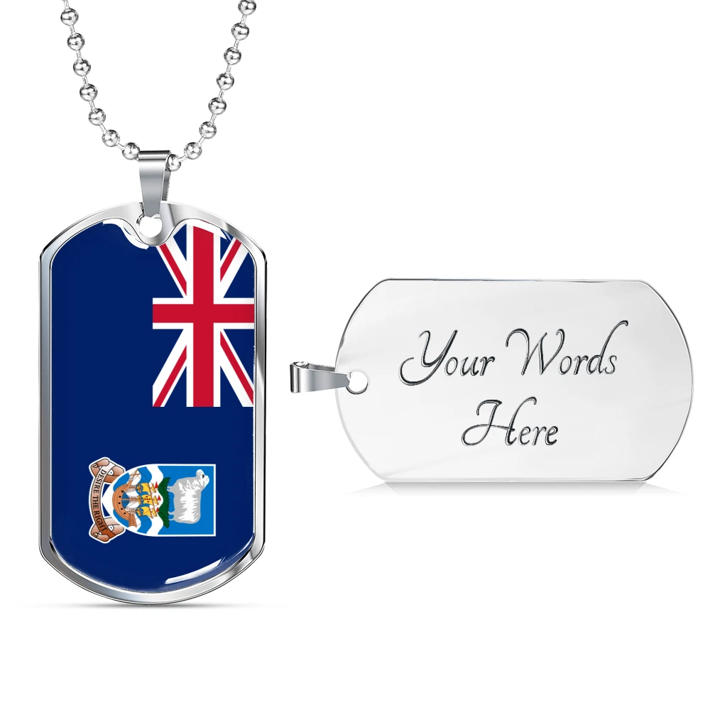 Falkland Island Flag Necklace Stainless Steel or 18k Gold Dog Tag 24" Chain