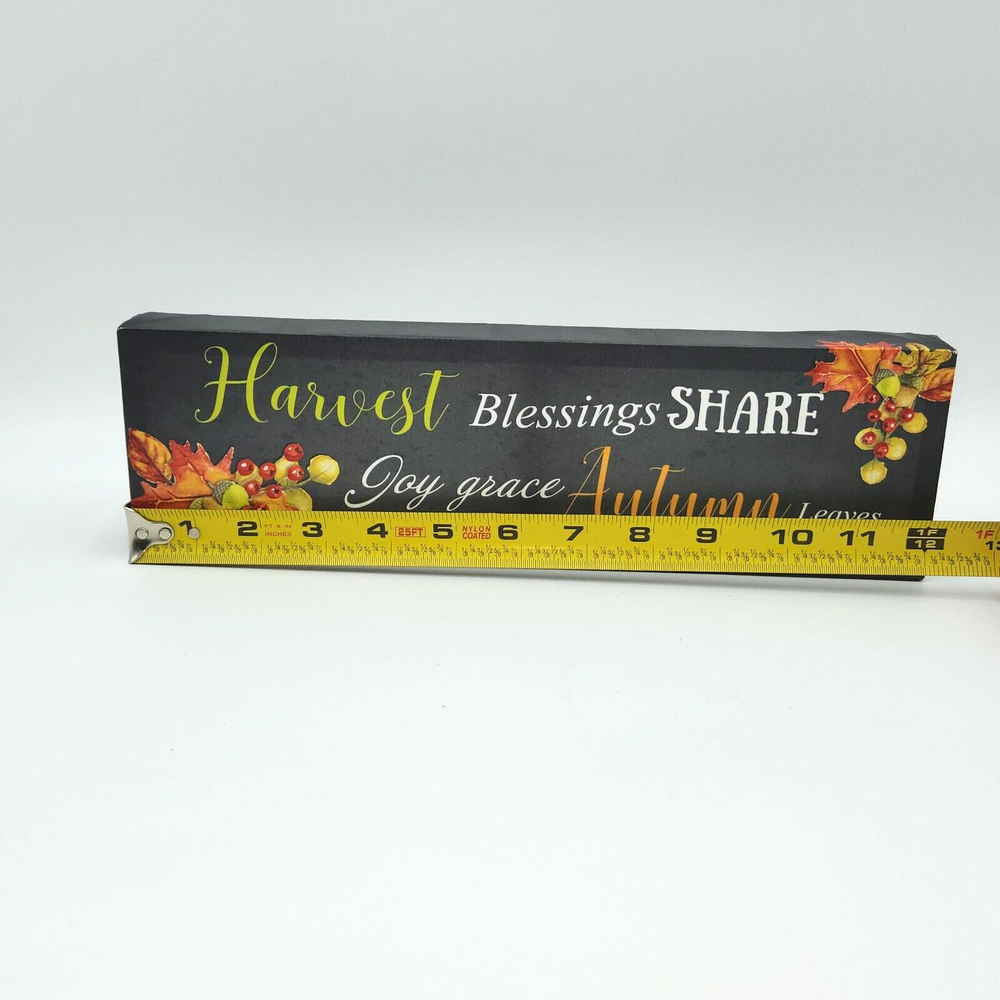 FALL SIGN DECORATION MIMICS A STRETCHED CANVAS ART HAS A WOOD FRAME, STRETCHED MATERIAL IS VINYL LIKE. HAS THE WORDING "HARVEST BLESSINGS SHARE JOY GRACE AUTUMN LEAVES" GREAT FOR FALL/AUTMN AND THANKSGIVING DECORATING NEW FROM STORE MAY HAVE SLIGHT SHELF WEAR AND BLEMISHES FROM STORE PLEASE SEE PHOTOS FOR MORE INFORMATION Measurements: Laying Flat (See Pictures for Measurements. All written measurements are an estimate, please make your own determination based on the actual measurements in the pictures) Please note color may differ slightly from the color shown in the photo due to lighting. We do our best to identify and disclose all flaws with closeup pics and descriptions. Photos are of the actual item for sale and details of any known flaws are captured and note (see condition section) If a listing is for multiple quantities of the same item, photos are taken of item in the worst condition. Items may vary slightly. EBAY DETERMINES OUR FATE AS SELLERS BASED ON YOUR RATINGS, PLEASE CONTACT ME IF YOU HAVE ANY QUESTIONS AND CONCERNS AND I AM MORE THAN HAPPY TO WORK WITH YOU. THANK YOU FOR YOUR UNDERSTANDING AND HAVE A WONDERFUL DAY! PLEASE SEE PHOTOS FOR MORE INFORMATION