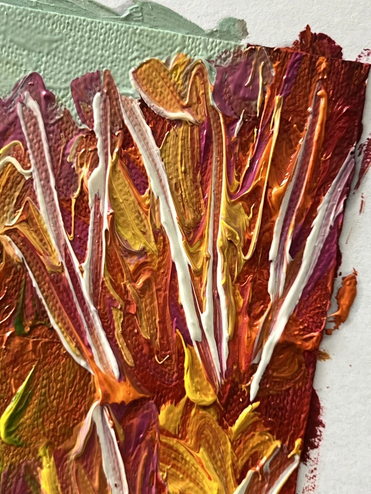 🌿 Looking for a unique gift that will add a touch of warmth and beauty to any home? Look no further than this stunning miniature oil painting featuring an abstract landscape. With its vibrant colors and intricate details, this painting is the perfect addition to any farmhouse or cottage-style decor. It's also a great way to bring the beauty of nature into your home, and to evoke memories of past travels and dreams of new adventures. And best of all, it's a one-of-a-kind piece of art that is sure to impress any recipient. So why wait? Order your handmade gift today and give the gift of beauty and inspiration! 🌷 Original author's oil painting on cardboard. Need a decorative frame. 🌿 Size: 10x10 cm / 4x4 inches . 🌷 Signed from the back. Made in Ukraine , 2023. 🌿 Materials: professional oil paints, cardboard ,. Unframed . Need a decorative frame. 🌷 I use exclusively professional and safe high quality paints for artists in my artworks. 🌿 Each parcel is securely and beautifully packed, so you don't have to worry about its safety. 🌷 Please note that paintings are sent without frames. 🌿 Please note that oil paints take a long time to dry, so for new paintings, the delivery period may increase by 1-2 weeks. ❤️❤️❤️❤️❤️❤️ Dear friends ❤️ I wanted to take a moment to express my deep gratitude for your unwavering support of my art and the importance of supporting Ukrainian artists during these difficult times. Your generosity has allowed me and many other talented individuals to continue pursuing our passion and providing for our families. In times of conflict, it can be easy to overlook the importance of art and culture. However, I believe that it is precisely in these moments that art becomes even more important. It provides a source of hope, inspiration, and beauty that can help us all to endure and persevere. Your contributions have not only helped me personally, but they have also helped to showcase the beauty and creativity of Ukrainian art to the world. Through your support, we are able to preserve and promote the rich cultural heritage of Ukraine, while also providing a source of hope and inspiration for our fellow citizens. I am deeply honored to be a part of such a wonderful community of supporters, and I am grateful for each and every one of you. Thank you for believing in me and my art, and for recognizing the importance of supporting Ukrainian artists during these challenging times. With heartfelt appreciation, Kate ❤️