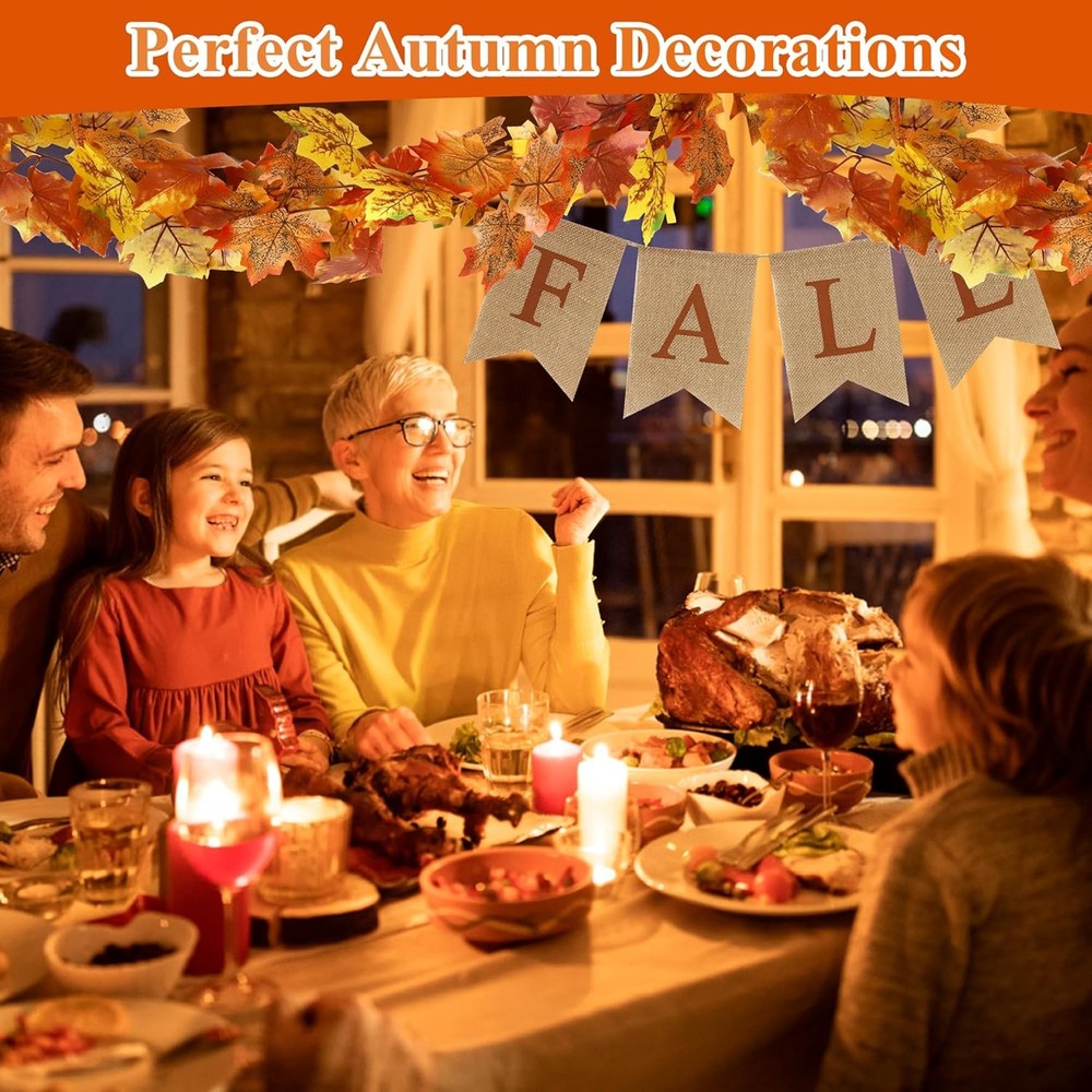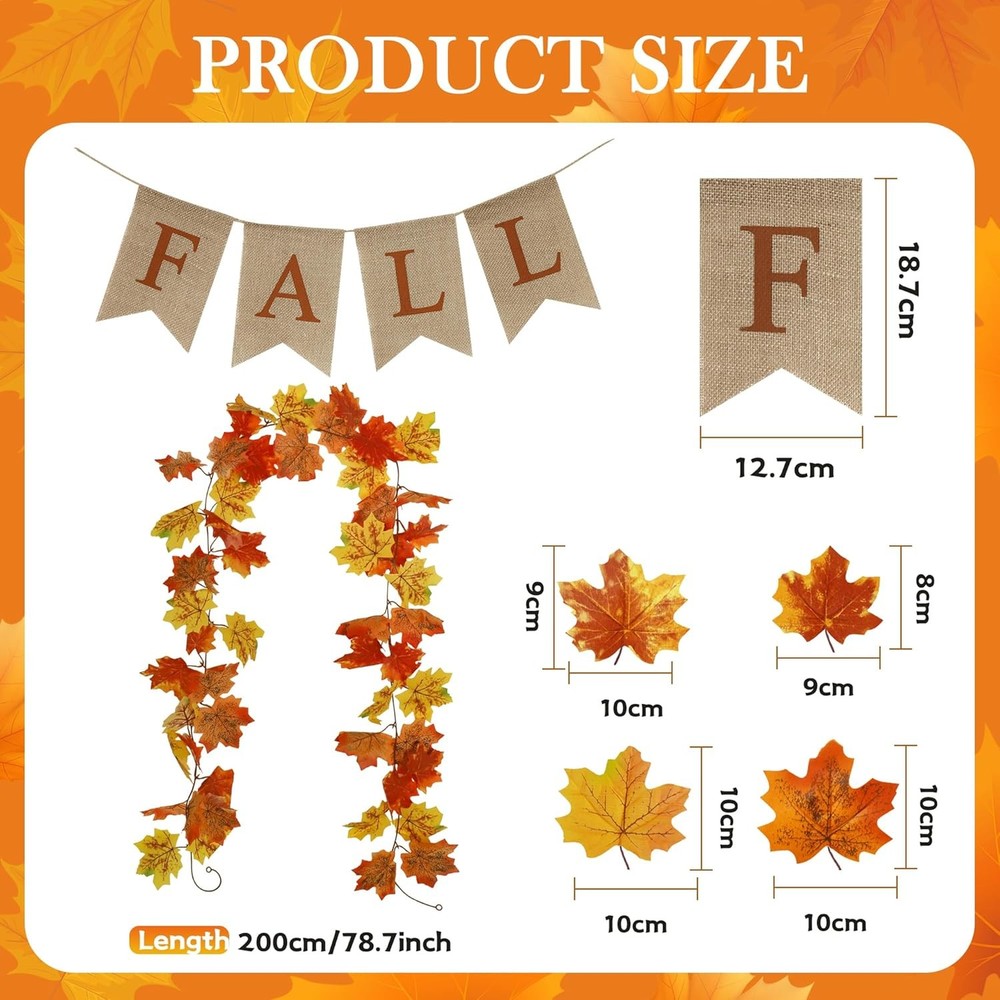 MISS FANTASY 13.2FT Fall Leaves Garland with 2PCS X 6.6FT Double Leaves, LuxeFusion Product Description Features Fall Decor - Package: 2 pack ( Total 13.2ft ) artificial maple fall leaf garland fall banner. The orange, yellow, and red and more color maple leaves make for a great blend of colors to warm up any room; Fall Decorations for home - Fall Leaves Wreath: The colors of the fall garland for mantle range from light green to bright orange, looking like real fall leaves, forming a perfect blend of colors to add a warm atmosphere to the holidays. Perfect fall decorations for home outside indoors; Fall Leaves Garland - Versatile: Whether you only need decorate the mantel, draping over a doorframe, or the stair banisters, or need other lengths to decorate other parts of your home, this fall leaves decor has you covered. Just use multiple garlands together to create the length you need. Selectively using a fall banner can make the autumn party theme more clear; Fall Porch Decor - Hanging Garland: Maple leaf autumn garland and banner are perfect for Indoor, Outdoor, Autumn, Wedding, Door, Fireplace, Thanksgiving, Festival, and Dinner Party, as a kind of hanging decorations,they can also decorate balcony, garden, wedding, table, swing stand, stair banisters, restaurants, office; Material - The fall mantel decor are made of plastic and silk cloth leaves, durable and vivid; the fall banner is made of linen, high-quality and strong; Product Details Is Artificial Garland: Yes Is Lighted: No Size: 2PCS X 6.6FT Double Leaves Shape: Square Manufacturer: MISS FANTASY Package Dimensions: 10.83 x 7.72 x 2.17 inches Item Weight: 6 ounces Country of Origin: China Item model number: Fall Brand: MISS FANTASY Color: Fall Material: Plastic Item Length: 13.2 Feet Plant or Animal Product Type: Maple Free Shipping All orders ship free and fast to your doorstep. Easy Returns Satisfaction guaranteed. 30-day returns, no questions asked. 24/7 Support Contact us anytime; we’re here to help, day or night. Brought to you by LuxeFusion – Quality you can trust.