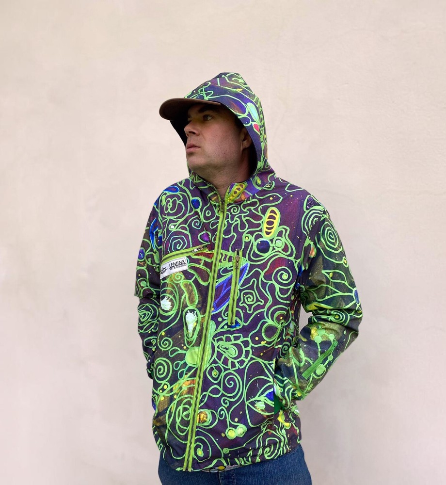 FALL / WINTER – Men’s sport jacket made of softshell material. Waterproof, windproof, non-shrinkable fabric. - 5x zip pocket - 1x inside pocket - hooded - wrist cuffs - fleece lining (fall) - warm wadding lining (winter) Pattern: ABSINTH. Availability: 7-10 days. Composition: outer material softshell 100% Polyester , lining: fall (fleece polyester 100%), winter (wadding polyester 100%) WHY LEMINX? - ACTIVE ARTIST SINCE 1999 - FUNCTIONAL CLOTHING - MADE IN SLOVAKIA - PSYCHEDELIC ART - SATISFACTION GUARANTEED