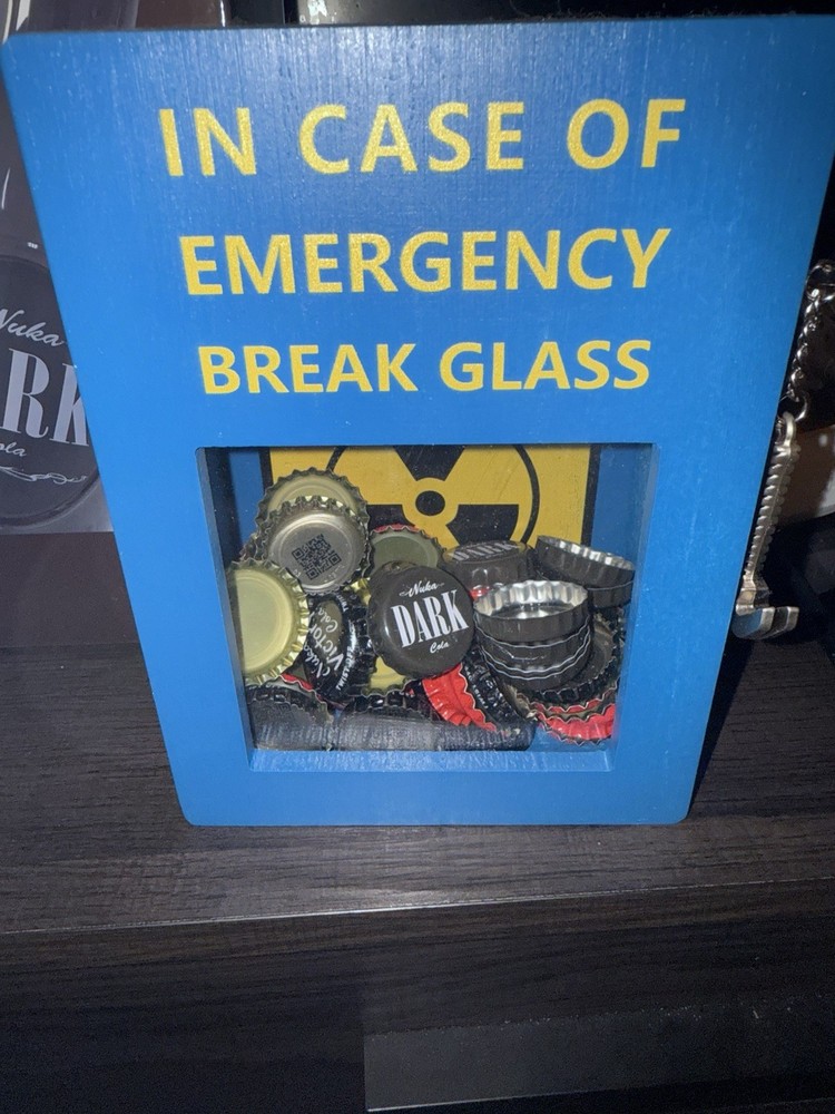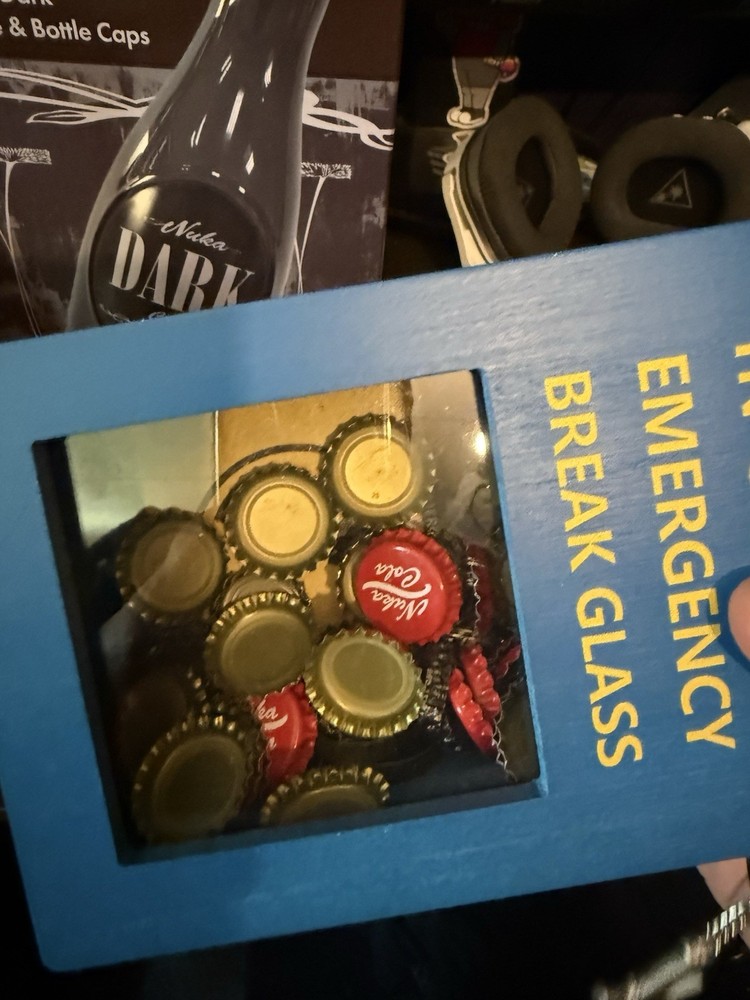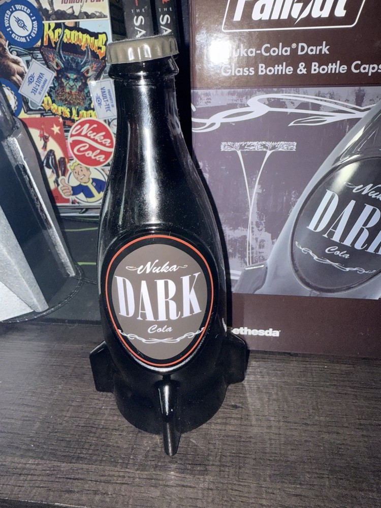 Selling my Bethesda Nuka cola dark bottle plus you get in fallout theme break in case of emergency with 20+ caps and they range from nuka dark, nuka victory and nuka cola My loss is your gain