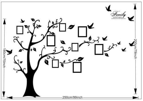 Family Tree Wall Decal Sticker Large Vinyl Photo Picture Frame Removable Black Family Tree Wall Decal Sticker Large Vinyl Photo Picture Frame Removable Black Finshed Size: 6.5' feet X 8.2' feet (Height x Width) This is for reference as a DIY can change the size to what you want. Quality: High Quality Vinyl Display photos of your loved ones with Family Tree Wall Decals! If you need a stylish way to add a little bit of vitality to any room of your house that isn't as permanent as paint, this removable family tree wall decal is a great selection for you! You can DIY your own family tree. Applies to any smooth surface, create a hand painted look Easy to apply, remove, re-position; Remove decals easily from the wall without damaging the paint Material: Removable and environment friendly PVC Last for years without peeling or fading Color: Black Package included: One piece ( size is for reference only, might be few inches different, DIY your own size base on your available space. ) Payment Shipping Returns Available Payments are: Pay Pal. Payment must be received within 4 days after acquisition of auction. When payment has not been made, all unpaid items will be reported. It is your responsibility to make sure your shipping address and PayPal is correct. Shipping address can’t be changed once the payment was received. Most orders are shipped within 1 business day after payment is received or cleared. Cut-off time is 1PM EST. Items will be shipped from Utah. Shipping cost is only valid for 48 States. Seller is NOT liable for any International customs duty fees, brokerage fees. 30 Days to return item if not 100% satisfied