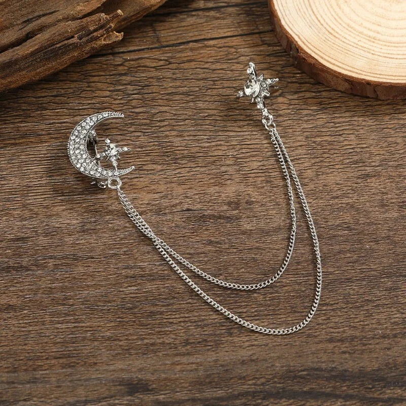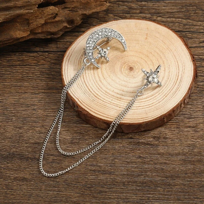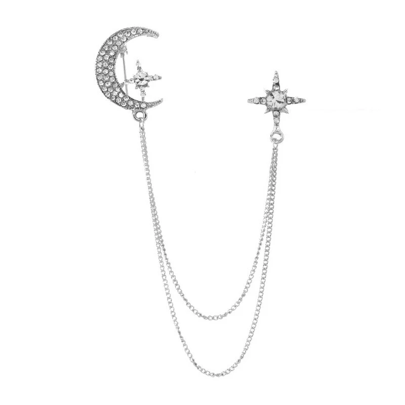 Famous Design Vintage Luxury Rhinestone Star Chain Brooch Fashion Accessories