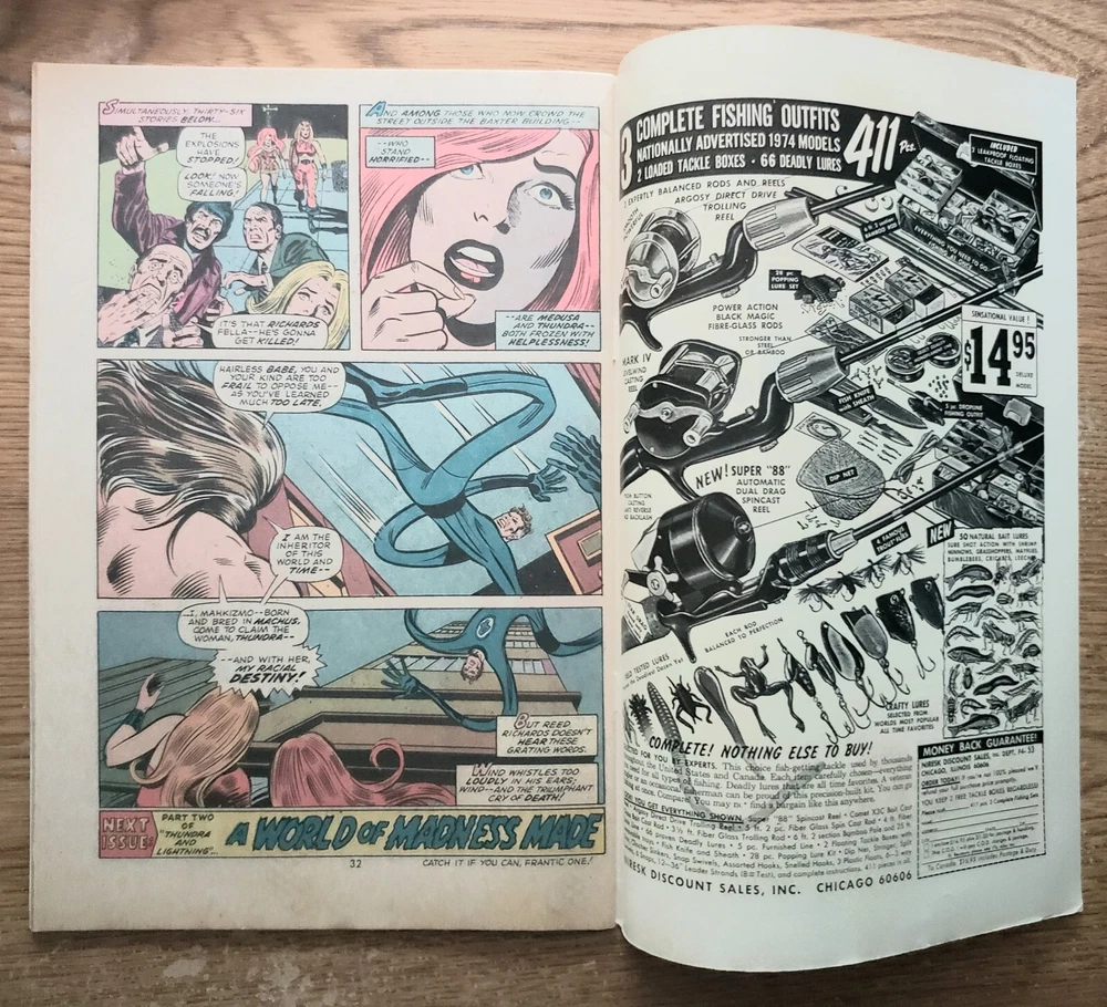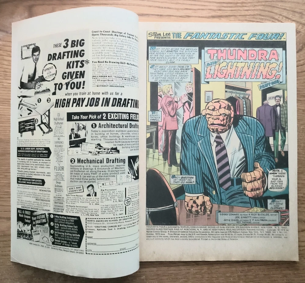 Fantastic Four #151 VF 7.5 "Thundra and Lightning!" published in 1974.