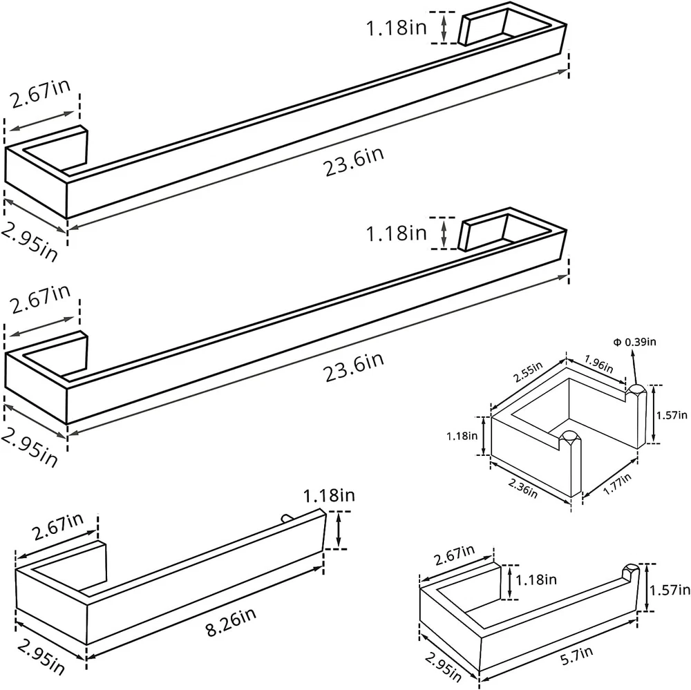 Fapully 5 Piece Bathroom Hardware Accessories Set Stainless Steel Chrome-5 Product Details Color: Chrome-5 Material: Stainless Steel Finish Type: Chrome Brand: Fapully Installation Type: Screw-In Shape: Square Item Weight: 2.8 Pounds Manufacturer: Fapully Package Dimensions: 25.63 x 7.87 x 2.52 inches Item Weight: 2.75 pounds Country of Origin: China Item model number: 100511C-5 Maximum recommended load: 22 Pounds Finish types: Chrome Number of pieces: 5 Batteries required: No Included Components: Hook 5-Piece Bathroom Accessory Kit Includes: 2x 23.6‘’ wall mounted towel bar, 1x 5.7'' toilet paper holder, 1x 8.26" towel ring and 1x 2.55''double robe hook High Quality Bath Hardware Set: Stainless steel keeps the surface spotless with maximal maintenance.Beautiful chrome finish, build to resist scratches, corrosion and tarnishing Concealed Screw Mount,Wall Mounted Take Advantage of The Unused WallSpace Through Out Your Home Making Your Home Seem Less Cluttered Widely Use: Sleek surfaces, no sharp edges, safely hangs bathrobe, bath towel, pants and shirt, swimsuits, coats, bags, shower caddy or other stuff Save Time & Money: You needn't to buy bathroom hardware accessory one by one,just buy a whole set directly here.And buying the whole set is much cheaper than buying them individually. Easy To Install & Durable: We provide all the screw accessories needed for installation in the package, There is no need to worry about how to install, We will give you an installation instruction manual