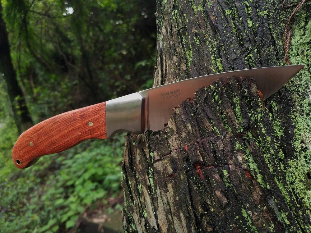is a sub-brand of Flyer Industrial Co., LTD., Its products cover household and outdoor sports. , is committed to make household life fashionable and colorful; and strive to make outdoor sports convenient and joyful. Farmer is the one you carry on your belt, or stow in your backpack, fishing box, glove compartment, etc. We like the everyman for pretty much everything – from fishing, hunting, and boating to super-tough survival and tactical applications. Model: HKT4003 Blade Edge: Plain Blade Steel: 5Cr15MoV Blade Finish: Satin Blade Thickness: 0.13" Handle: Rosewood Overall length: 8.58" Blade Length: 3.62" Weight: 5.61oz Accessory: Leather Sheath Blade is made of 5Cr15MoV stainless steel with satin finish. Natural rosewood handle has ergonomic feel that fits comfortably in your hand. Leather Sheath can be configured into belt carry for easy access SPECIFICATIONS: Blade Length: 3.62"; Blade thickness: 0.12";Overall Length: 8.58";Weight: 5.61oz. Full-tang design for camping , survival and fishing