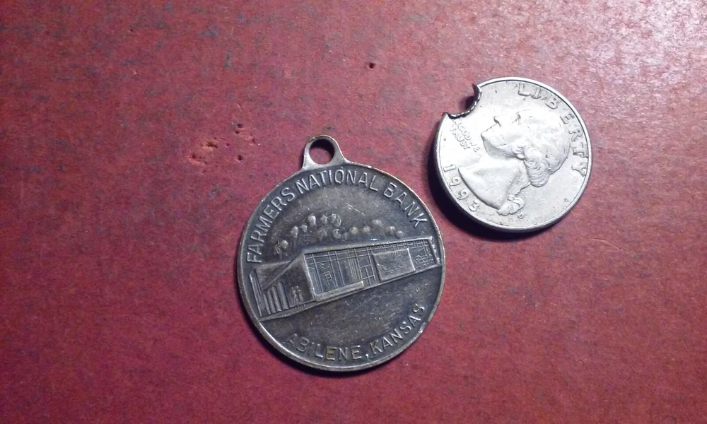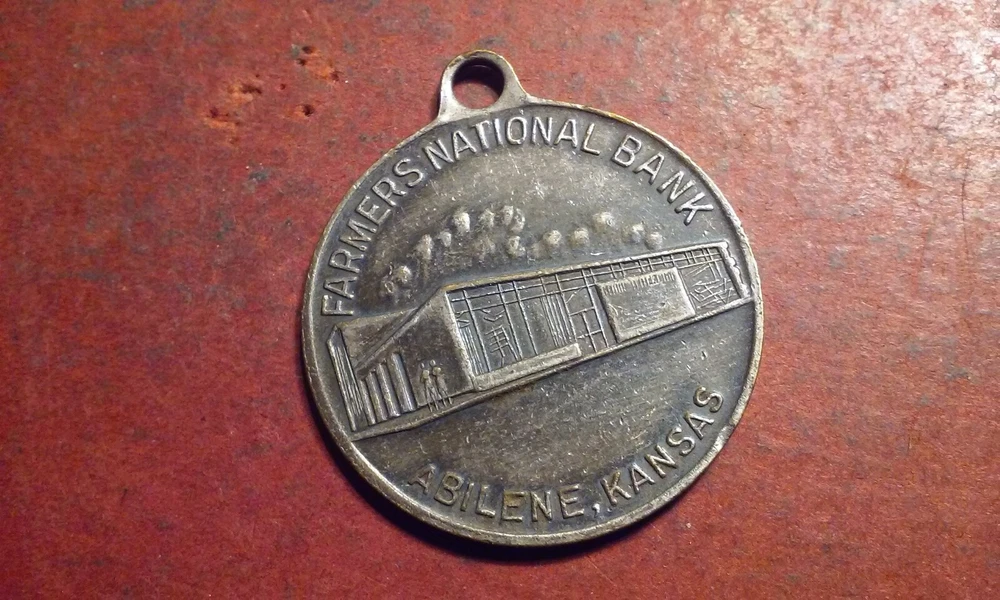 Vintage, Farmers National Bank Abilene Kansas Key Tag Fob Token Pendant Silver-Tone. Scarce, Advertising - Promo. Good Condition, mild wear only.