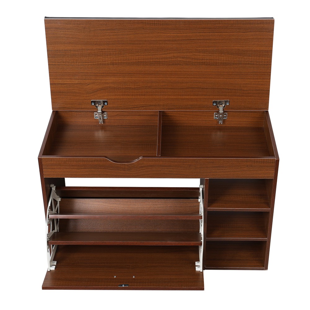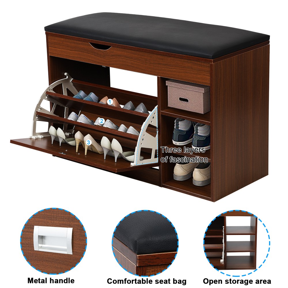 This shoe cabinet is a game-changer for small spaces! The three flip-up drawers keep everything neat and easy to access, while the farmhouse style adds a cozy touch to any entryway. Sturdy build, plenty of storage, and doubles as a bench—perfect for keeping shoes organized without sacrificing style. Love how it keeps clutter out of sight!