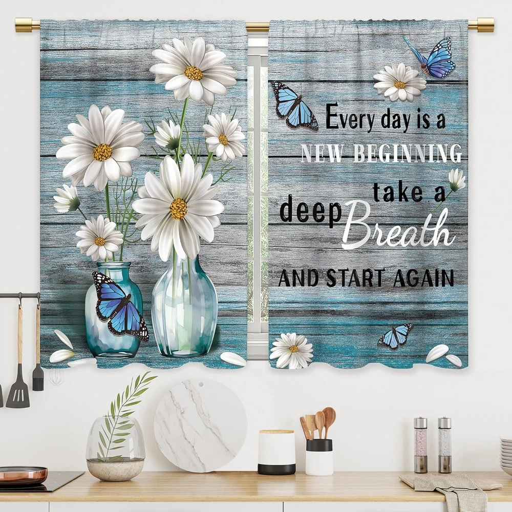 Farmhouse Chic: Add rustic charm to your kitchen with these rustic farm kitchen curtains. The vintage printed design featuring daisy and wooden adds a touch of country style to any space. Perfect Size: Each set includes 2 panels measuring 27.5" wide x 39" long, making them ideal for small windows or to style in a cafe-like manner. The rod pocket design ensures easy installation and a neat, tailored look. Light Filtering��The small curtains have just the right thickness to let in some light and also provide privacy. They will block a sun reflection, but not all of the light. You can cover the lower portion of your windows to provide privacy or used alone on shorter length windows, a great highlights to the kitchen. Washing Care: Machine wash cold, not fade, gentle cycle, with similar colors, tumble dry low, cool iron if needed, easy care curtains could save your times. After-sale Service: You have no risk to try and we will provide you the best service! We stick to pay attention to product quality, if there''s any quality problems please contact us.