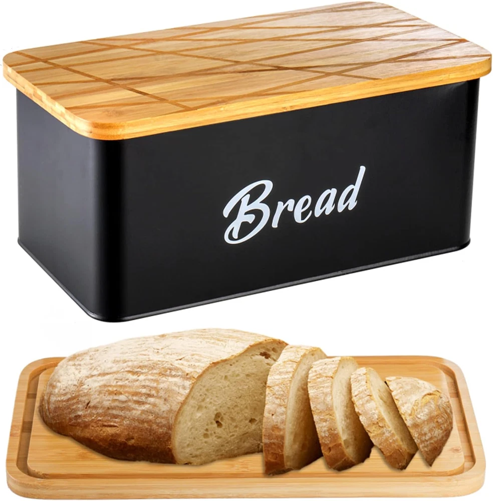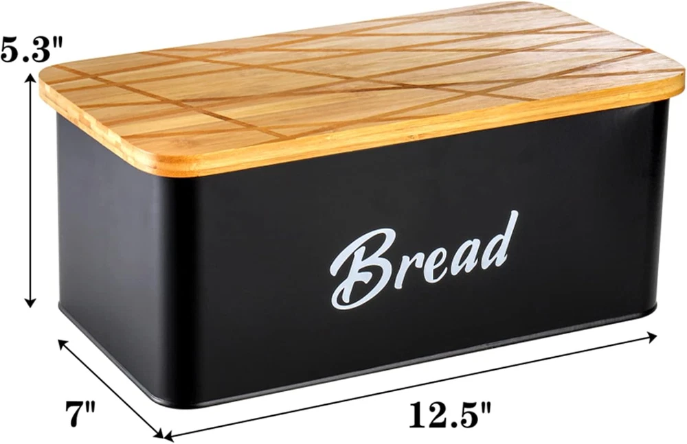 Store New Arrivals Add to Favorite View Feedback Contact Farmhouse Metal Bread Box, Black Bread Storage Container with Cutting Board Lid, Vintage Retro Bread Keeper Bin for Bread, Kitchen Countertop, Pantry, Freezer, Keep Fresh Description Item model number Ly-BreadBox-BambLid-Black Capacity 13.5 Liters Closure Type Flip Top Country of Origin China Number of Sets 1 Is Microwaveable No Unit Count 1.0 Count Item Volume 12.5 Liters Product Dimensions 12.5"L x 7"W x 5.3"H Material Metal, Bamboo Item Form bread box Container Shape Rectangular Item Package Quantity 1 Lid Material Bamboo Is Dishwasher Safe No Item Weight 3.2 ounces Material Feature Food Grade Special Feature Lightweight, Durable Color Black Specific Uses For Product Bread storage Recommended Uses For Product Bread Product Care Instructions Hand Wash Only Great Combination: Our modern bread bin is made of durable and food-safe galvanized metal, matched with a bamboo lid, flip the lid and it doubles as a cutting board. Stylish Design: The bread keeper features a sleek black color with crossed pattern, making it a wonderful addition to your kitchen or pantry, blends well with minimalist, contemporary, rustic or any other interior design. Easy Clean and Use: The bread saver features non-stick smooth surface, easy for hand washing or wipe cleaning. It is also lightweight, easily bring it from counter to table for breakfast serving! Special Gift: This stylish bread box is a practical and much-appreciated gift for housewarming, birthday, Christmas, Mother's Day or any special occasions! Package Details: This bread holder measures 12.5''L x 7''W x 5.3''H, with large capacity for a loaf, pastries, cookies, donuts, chips and more. Product Description Lyellfe Bread Box with Bamboo Lid for Kitchen Countertop, Pantry or Freezer Made of durable and food-safe galvanized metal, matched with a bamboo lid, flip the lid and it doubles as a cutting board. Features a sleek black color with crossed pattern, a wonderful addition to your kitchen or pantry. A practical and much-appreciated gift for housewarming, birthday, Christmas, Mother's Day or any special occasions! Farmhouse Bread Storage Container Large Capacity The bread bin has a very large capacity for loaf, pastries, cookies, donuts, chips and more. Double Used Lid This bamboo board is not only used as cover lid, you can also flip the lid and used it as a cutting board. Perfect Match Blends well with minimalist, contemporary, rustic or any other interior design. ABOUT US We offer the best prices around on high quality products. Our E-store includes media such as books, movies, music and games while offering electronics, toys, sporting apparel, clothing, tools, general home, garden items and more. SHIPPING We are always working hard to ensure your package arrives as soon as possible. Please understand that some factors like weather, high postal traffic, and the performance of shipping companies are outside of our control. We offer free shipping to the lower 48 states and ship within 2 business days of payment, usually sooner. We do not accept P.O. Boxes. Please provide a physical address. For shipping outside of the continental USA, we only use eBay's Global Shipping Program.The item is shipped to KY and then sent to the rest of the world. International customers are responsible for all duties and taxes. Continue to check out in order to calculate costs for shipping the item to your country. Messages regarding eBay's Global Shipping Program MUST be directed at eBay EXCLUSIVELY. RETURNS We offer a 30-Day Return Policy on items which you are not completely satisfied with. You have the option for a full-refund or an exchange of the item. No returns are available on items shipped outside of the USA. PAYMENT We accept PayPal. CONTACT US This page content is yet to come Please ad us to your favorite seller and visit again later Thank You CUSTOMER SATISFACTION We try our very best to make sure every customer is completely satisfied. If there's a problem, message us! We're happy to help. WE ACCEPT Copyright © 2021 AutoDS. | All Rights Reserved