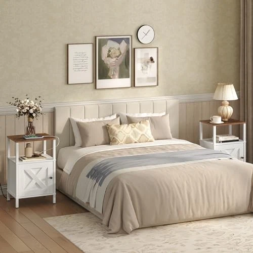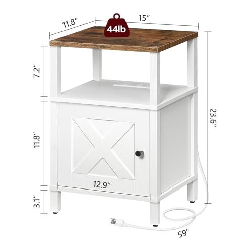Return Policy Fast Delivery Trusted seller Set of 2 Farmhouse Nightstand with Charging Station, White Bedside Table with USB&Type-C Ports and Outlets, End Table with Storage, Night Stand for Bedroom, White and Rustic Brown Product Description Practical Charging Station: This nightstand includes 2 outlets, 1 USB port, and 1 Type-C port, as well as a 4.9 ft power cord, offering versatile and convenient charging options to meet your diverse needs Ample Storage Space: Measuring 15"L x 11.8"W x 23.6"H, this bedside table has multi-tier shelves that can each hold up to 44lb. Its partitioned design allows for organized storage of books, alarm clocks or personal items, whether you prefer open or private storage Beautiful and Simple: The night stand features a minimalist design with an overall white color and rustic brown top panel accents. Its doors are styled in a geometric pattern, giving it a unique look that adds elegance to your bedroom Selected Wood: Made of premium particleboard, this bedside table is durable and easy to clean. Its smooth and burr-free surface provides comfortable touch, while the adjustable feet enhance stability and protect your floors from scratches and abrasions Easy Assembly: Our side table with storage has simple structure and comes with detailed, illustrated instructions and serial numbered installation accessories. By following the instructions, you can quickly and easily complete the installation and enjoy your handwork Shipping Returns Payment Shipping Shipping is FREE to all addresses other than APO/PO boxes in the lower 48 states. All our stock ships from US-based warehouses. Shipped via USPS or UPS (depending on location and package weight) Unless stated otherwise, all orders will ship within 24-72 hours of your payment being processed. Check our feedback to see the great reviews of FAST shipping we offer. Returns Seller does not accept returns Payment We currently accept payment via eBay managed payments only. Once payment is cleared, we will dispatch your shipment within 1-3 business days. Please refer to the "Shipping" tab for more information regarding shipping speed to your destination.