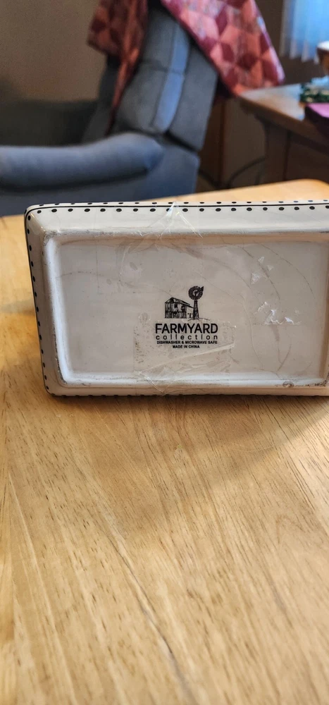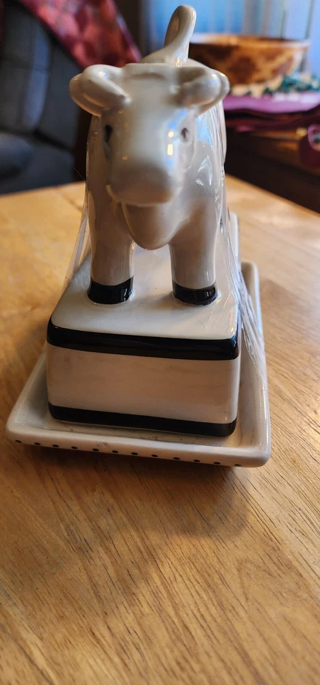 With Lid:YesColor:WhiteStyle:FarmhouseCountry/Region of Manufacture:ChinaShape:RectangularProduct Care Instructions:Dishwasher SafePattern:Cow PrintFinish Type:PolishedType:Butter KeeperFinish:PaintedMaterial:CeramicBrand:Farmyard CollectionTheme:Cows