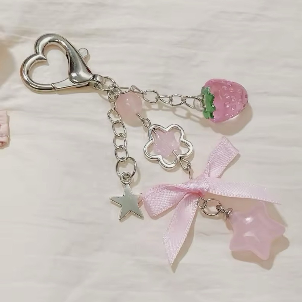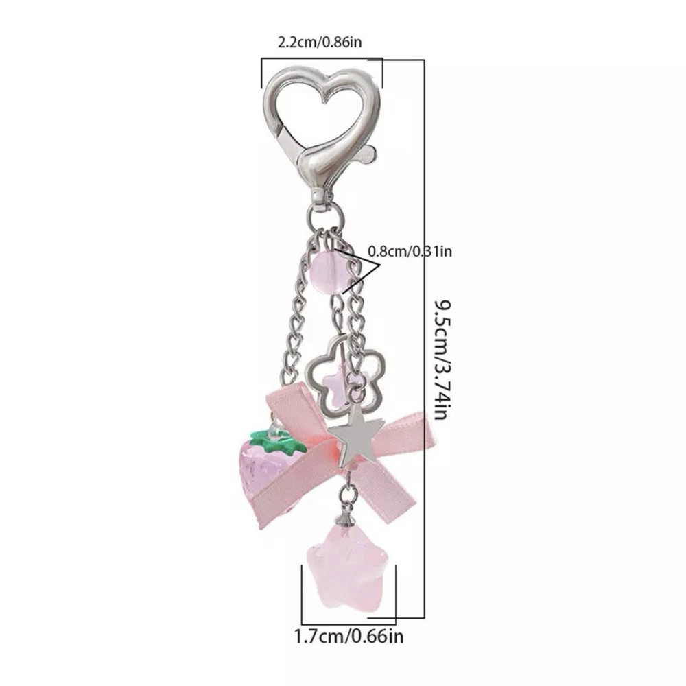 Cute Pink Strawberry Bow Keychain – Silver Heart Clasp, Jelly Charms, Star & Flower – Stylish Bag & Key Accessory Add a touch of charm to your accessories with this adorable pink strawberry bow keychain! Designed with a large silver heart-shaped clasp, this keychain features cute jelly-like translucent pink charms, including a strawberry, round bead, star, and flower, along with a silver star and a delicate pink ribbon bow. Perfect for adding a stylish and playful touch to your keys, bags, or backpacks! Features: • Charming Design: Features a mix of clear pink jelly charms, a silver star, and a pink bow for a cute and stylish look. • Durable & Lightweight: Made from resin, alloy, and acrylic with electroplated silver accents for a polished finish. • Heart-Shaped Clasp: Secure and stylish, making it easy to attach to bags, keys, or zippers. • Versatile Accessory: Ideal for decorating keys, handbags, backpacks, belts, AirPod/earbud cases, or car accessories. • Great Gift Idea: A perfect gift for women, teens, and anyone who loves cute and trendy accessories! Specifications: • Material: Resin, Alloy, Acrylic • Processing: Electroplating • Length: Approx. 4.33 inches (11 cm) • Color: Silver with Pink Accents (As Shown) Package Includes: • 1x Pink Strawberry Bow Keychain Important Notes: • Dimensions: Due to manual measurement, there may be a slight size difference. • Color Variations: Due to lighting, screen settings, and viewing conditions, colors may vary slightly from the images. • Customer Satisfaction: If you experience any issues with your order, please contact us before opening a return case or leaving feedback. We are committed to resolving any concerns and ensuring your satisfaction! Elevate your accessories with this adorable pink strawberry bow keychain – a perfect blend of elegance and cuteness! Order yours today!