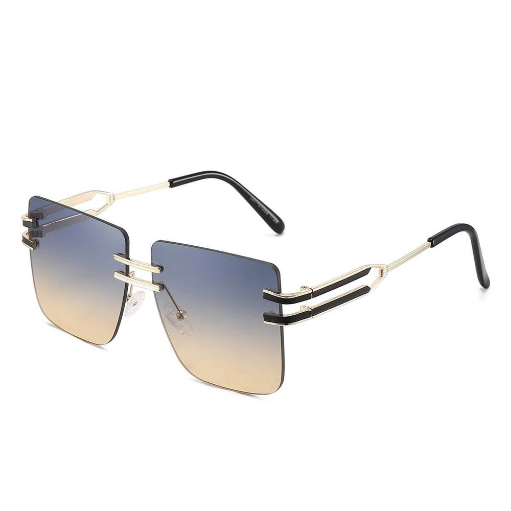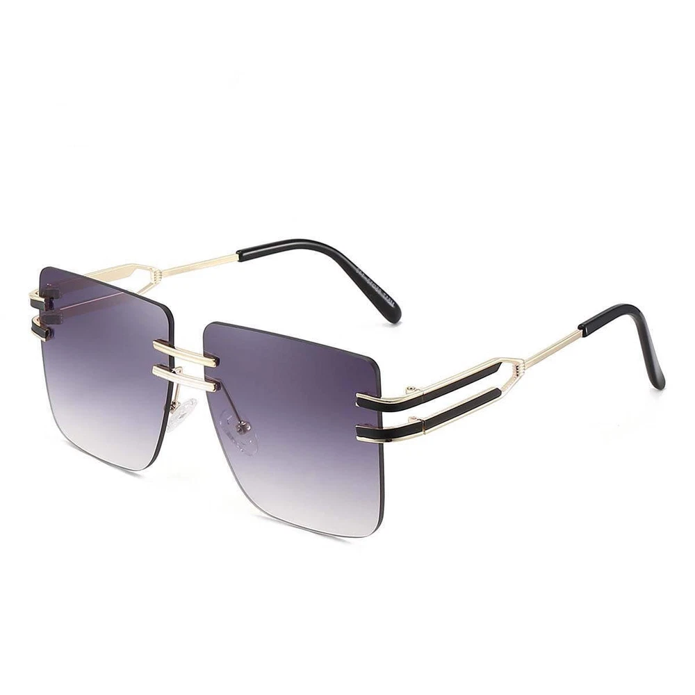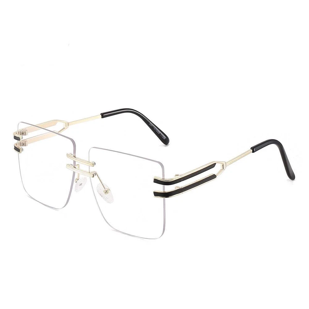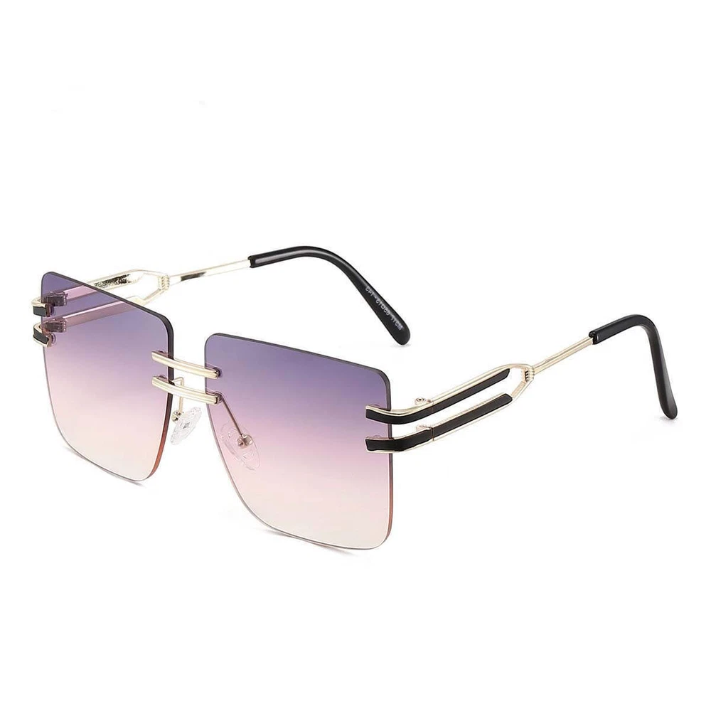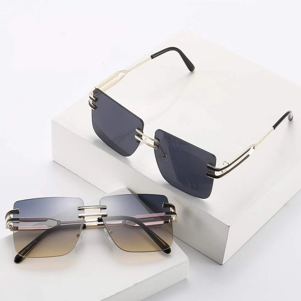 Product information: Lens material: PC Mirror frame material: metal Glasses structure: frameless Glasses style: box UV resistance grade: UV400 Style: metal, leisure, personality, fashion OL, Europe and America Color: black gray, tea, gray powder, transparent, gradually gray, double tea, tea powder, gray yellow Size: 146x55mm Packing list: Sunglasses X1PCS