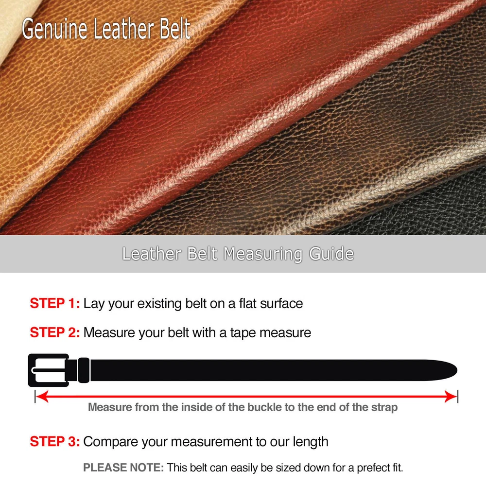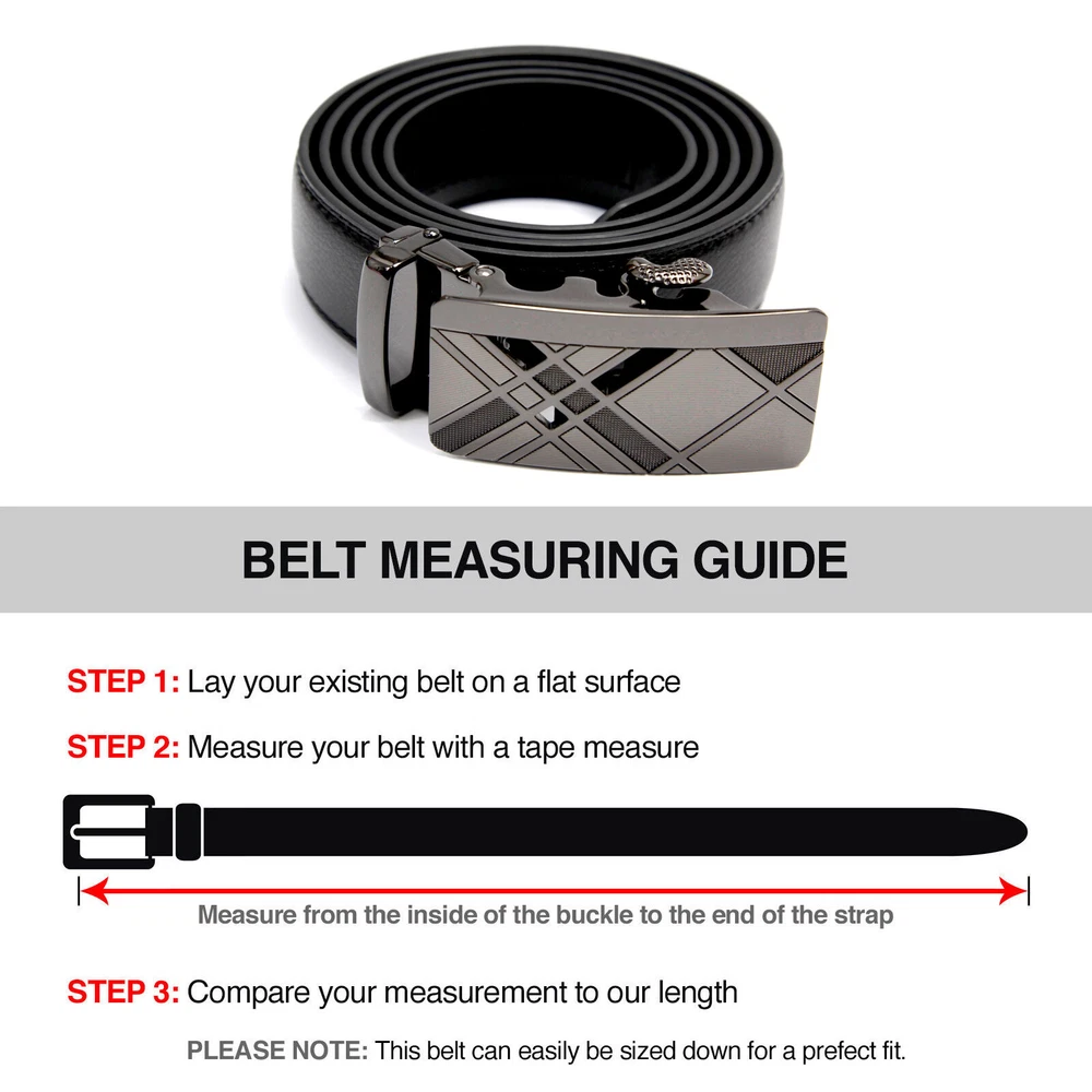 Free & Fast Shipping from Real US Warehouse Featured Item Description - Real Made in Korea Genuine Leather Belt - Belt for Automatic Buckle - The stylish Comfort Click Belt guarantees a perfect fit every time - Unique design utilizes a micro-ratcheting track system that allows you to adjust the belt every 1/4" - Say goodbye to belt holes and stretched out, uncomfortable belts - No holes on the outside. Makes it look like a custom made belt just for you - Made of genuine leather with a stylish, quick-release, silvertone metal buckle - Great gift for your loved ones Choosing a correct length Adjusting the belt length Included in this package - 1X Man's leather belt only - Color & Size shipped according to your selection Shipping & Payment Payment - We require Paypal payment only. - Your order will be cancelled if the payment is not received in one week. We offer Fast US Shipping / Not Ecomomy / Never China - There is a big difference between US Shipping and shipment made from foreign countries - There are some sellers who place orders from China after receiving US orders - If you order your urgent part from these sellers, you would have to wait a month to get it - Our orders are shipped daily from Georgia USA warehouse - Free Tracking number is provided for this item - Many years of experience to provide the fastest deliver solution for our valued customers - Please place an order with us. You will be pleasantly surprised by our service Shipping - Delivery area: We are only shipping within 48 continental United States. - Delivery method: USPS Priority & USPS First Class. Choose Priority for fast delivery. - Handling time: 1 business day after receiving payment. If USPS is open, we are open too. - Not all our items are shipped with the tracking number. - Buyers are responsible to provide us with the correct address. Please confirm your address. Handling And Return - We accept return within 14 days after delivery. - Defective items will be exchanged or fully refunded on buyers request. - 15% restocking fee will be charged on non defective items. - All items need to be returned in original package with all the supplies. - Shipping and handling fees are non-refundable under any circumstances. - Our goal is 100% customer satisfaction. - Got a problem? No Problem. Contact us by eBay message system. - We will reply promptly during business hours. Customer Support - Please do not open a case or leave us a bad feedback. This can only delay our service. - Mon~Fri: 9AM to 5PM | Sa:t 9AM to 12PM | Sun: Closed (Eastern Standard Time) - If you are happy with your purchase, please leave us a 5 star feedback. Thank you. Copyright 2018 Designed and Maintained by miniduino an eBay Store