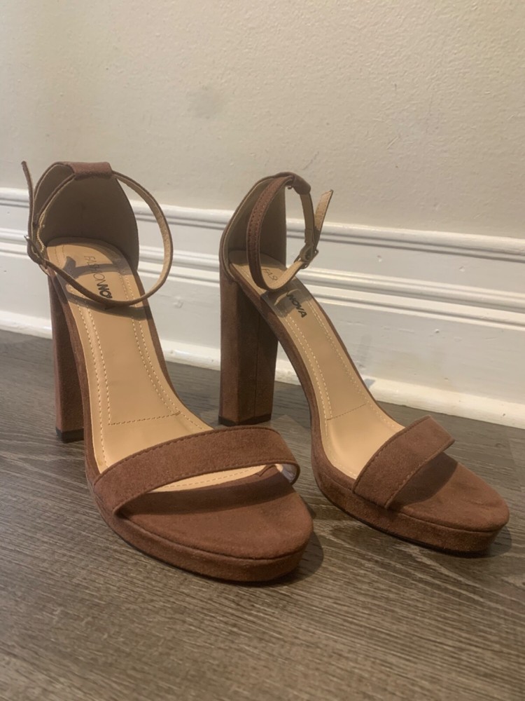 These heels are a steal! The burgundy shade is rich and versatile, perfect for dressing up any outfit. The straps give them a chic, sexy look while keeping them secure on your feet. Even pre-owned, they’re in great condition—super comfortable for a night out. Love how they elevate my style without killing my feet!