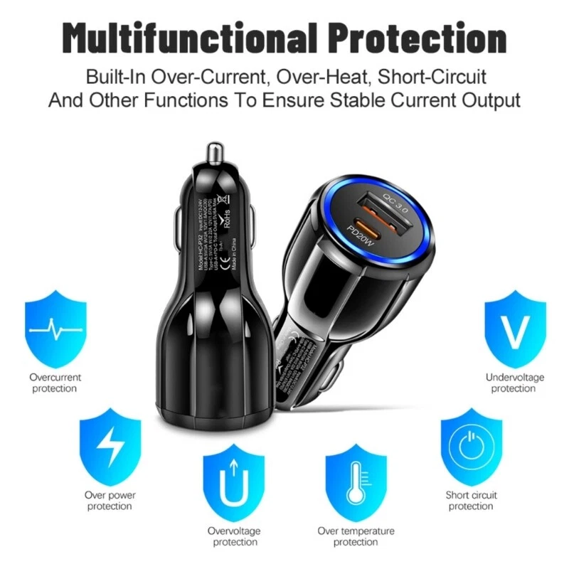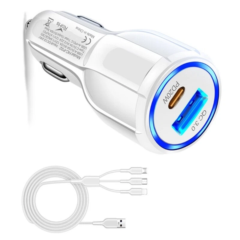 Features: This car can Charging four compatible devices at the same time. Four times fast than normal Featuring 2 Port usb designs to power multiple devices simultaneously for convenience. This car includes overloads and short circuits protective, ensuring a stable and secure Charging for your devices while traveling. Suitable for individuals and families who require reliable charging solution during commutes or long trip, accommodating various devices from phones to tablets. Perfect for any driving scenario, whether on a daily commute or extended journey, this car keeps your devices power without the need for additional outlets or stops. Specifications: Component:ABS Color:White/Black Input: 12-32V PD20W Output: 5V=3A 9V=2.22A 12V=1.67A QC3.0 USB Output:.5V=3A 9V=2A 12V=1.8A Size:Approx.7.4x3.1x3.1cm/2.91x3.1x3.1inch Package Includes: Set Car note: 1.Please allow 1-2cm errors due to manual measurement, making sure that you not mind before order. 2.Due to the differences between different monitors, the picture may not reflect the actual of the item.