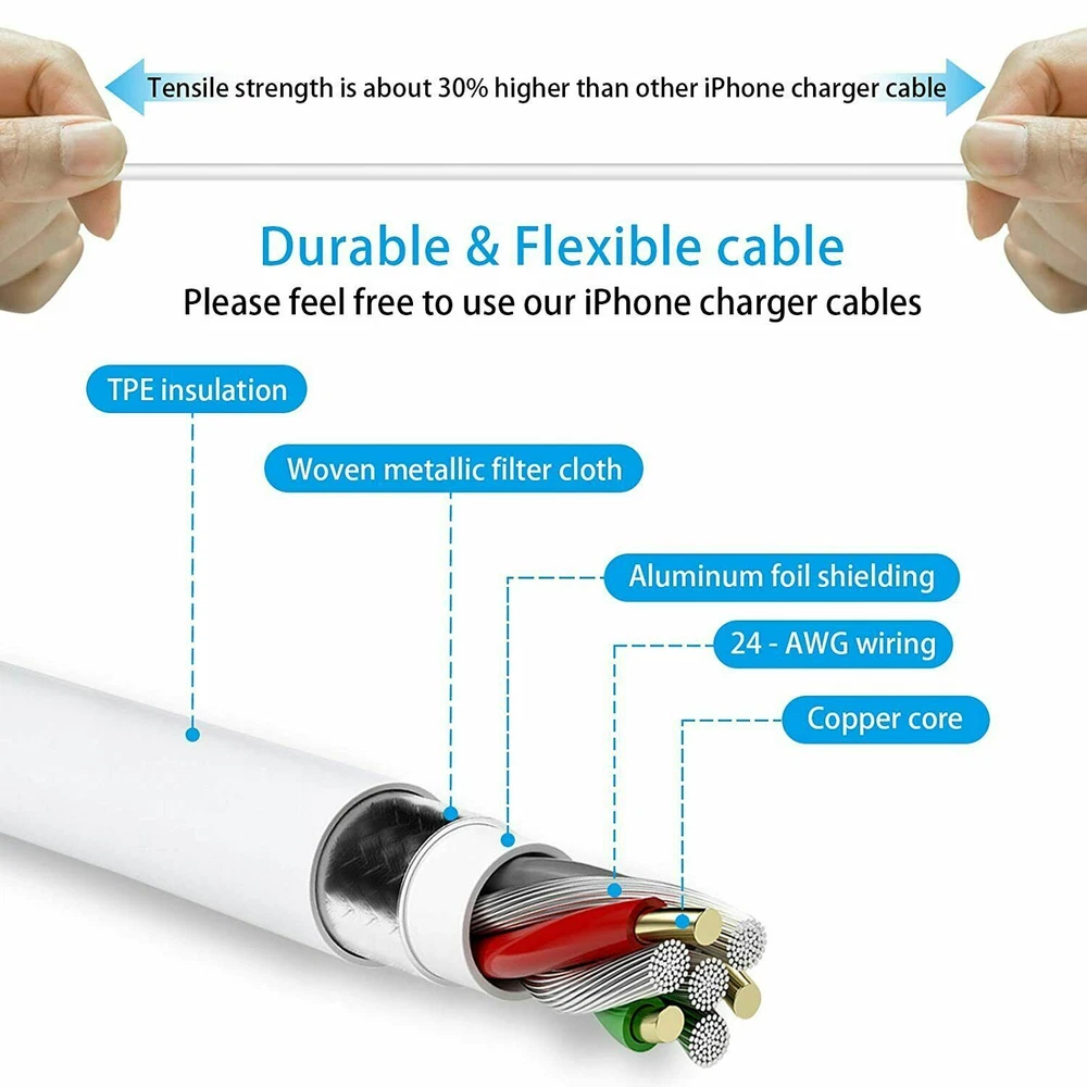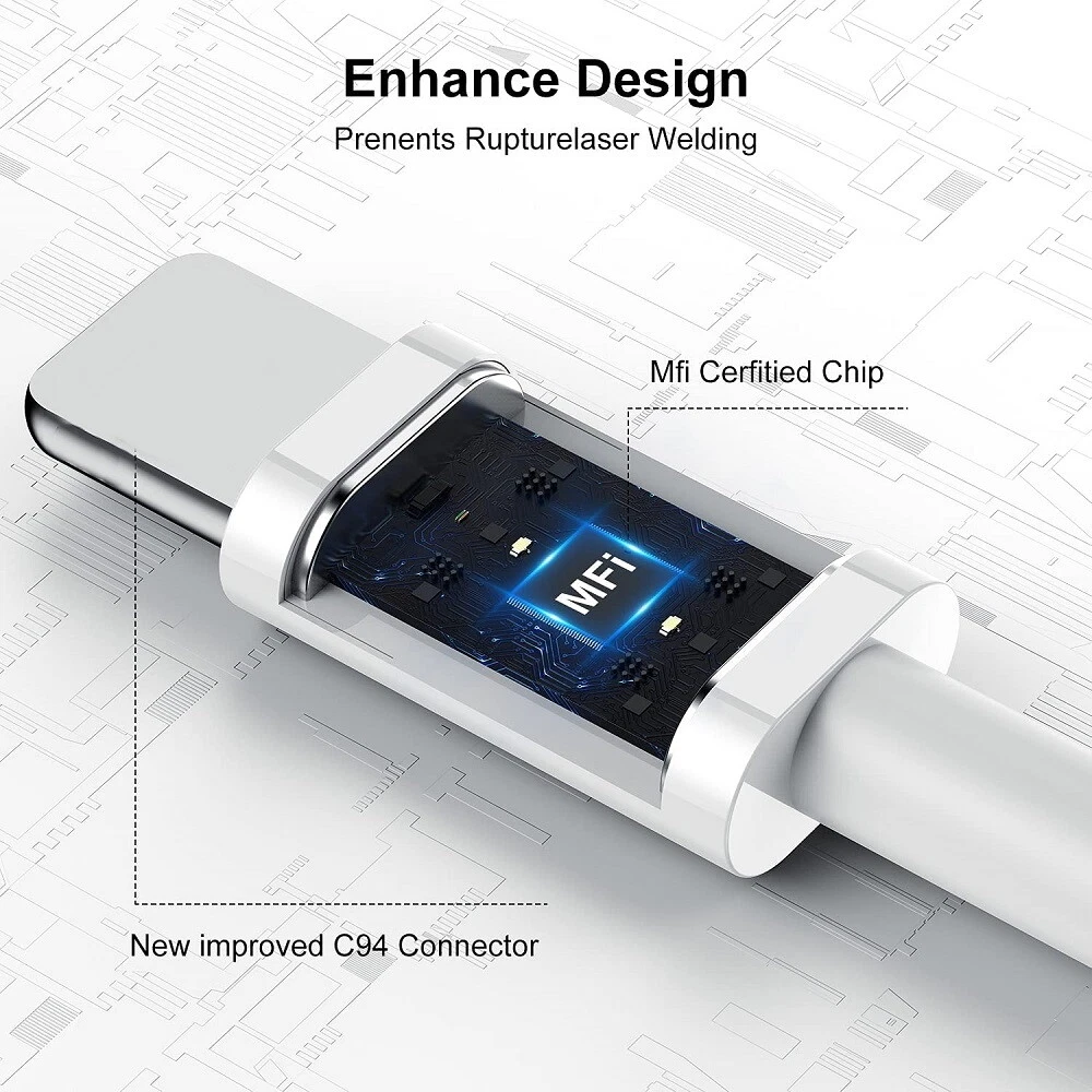 • MFi Certified to ensure flawless compatibility with iPhone, iPad Series with connector. • 3 FT/6FT for iPhone charging cable, perfect for office/ business/ home use. • For iPhone Fast Charger can charge the iPhone 12 Pro up to 60% in 30mins with the 20W PD wall charger. • Excellent copper wire ensures the safety of the device duri ng charging, specifically designed for fast charging. Compatible Devices: For iPhone 14 Pro Max, For iPhone 14 Pro, For iPhone 14 Plus,For iPhone 14, For iPhone 13 Pro Max, For iPhone 13 Pro, For iPhone 13 Mini,For iPhone 13, For iPhone 12 Pro Max, For iPhone 12 Pro,For iPhone 12 Mini,For iPhone 12,For iPhone 11, For iPhone 8, For iPhone 7 plus, For iPhone SE, For iPhone 6s plus, For iPhone 8 plus, For iPhone 5c, For iPhone 5s, For iPad Pro, For iPad For Air, For Air 2, For iPad mini, For mini 2, For mini 4, For iPod Touch, For iPod Nano 7th gen Color:White Cable length: 3 FT/6FT Package Included: 1/3/5/10/20/50/100x USB-C To iPhone PD Cable