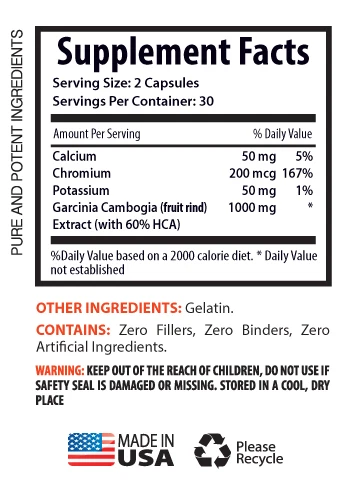 Garcinia Extract 60% 1300mg Super Fruit for the Super Athletes Burning of the Fat in the Liver. Suppressing Your Appetite, Enhances Metabolism. Enhancing Mood Levels, Aids Immunity. Lowers Cholesterol Level, Help with Depression. Antioxidant nature Booster, Burn Belly Fat. Boost Kidney Health and Your Energy levels. Increases Good Cholesterol, Boosts Immunity. Regulate Blood Sugar, Eliminate Depression. 1 Bottle, 60 Capsules Made In USA What Is Garcinia Cambogia? The rind of this fruit is where the Garcinia Cambogia extract comes from. It has been a part of Southeast Asian culture and cuisine since centuries. It has been added to cuisines to give them a sour flavor. It was used not only as flavoring agent in fish, meat, curries and cutneys but had also been utilized to treat many health problems. Some recent studies have shown that this extract consist of health benefiting element like calcium, hydroxycitric acid, and potassium which are bound to improve health in different ways. It is particularly the skin that is full of the biologically active ingredient Hydroxycitric Acid (HCA). Garcinia Cambogia Has Been Proven In Reducing Weight: Whenever there is buzz is about something new most of it has to do with the benefits that it offers. This is the case with Garcinia Cambogia as well. Garcinia Cambogia also known as Garcinia Gummi Atta is popular for its effectiveness, visible results and the plethora of benefits that it offers. It has been used in the South and Southeast Asia including India as a souring agent and has been in the use as a traditional medicine as well for a very long time now. People have been consuming this fruit for centuries and it is quite healthy when eaten in its most natural form that is when eater as it is. Garcinia Cambogia has been proven to achieve visible and commendable results in reducing weight. It helps in combating weight gain issues without any diet loss as it suppresses the hunger naturally and a person taking this supplement feels fuller without a need to take follow up meals. Garcinia Cambogia Helps Obese People Reduce Their Belly: Garcinia cambogia is an edible, green-yellow, pumpkin-like fruit. It is native to Indonesia, Malaysia, India, and a few regions of Africa. Traditionally, it is consumed raw - just before meals - by some people in the Malay Peninsula. Fat reduction is the most talked about benefit of this fruit. Garcinia cambogia supplements are made from a fruit extract, known as hydroxycitric acid, or HCL. This substance helps obese people reduce their belly circumference in two ways - it prevents fat storage and it dampens appetite. HCL inhibits citrate lyase, carbohydrates whose conversion into fats produces harmful bad cholesterol. The extract raises serotonin levels in the brain; serotonin is a chemical whose deficiency leads to depression; and often unhealthy overeating. Garcinia Cambogia Ability To Suppress Your Appetite: Portion and appetite control are the number one factor amongst many dieters why they fail their diet. Sooner than later the brain will release hunger hormones like Ghrelin and Leptin that will increase your hunger and will make it almost impossible for you not to start eating. It often start with just a little bit, but then when your senses gets hang of it, you will soon be back to the old eating habits, the habits that made you gain weight. One benefit with Garcinia Cambogia is its ability to suppress your appetite in such a way that will you feel filled up lot faster than without, and at the same time you will avoid those cravings for sweets that often hits people during the afternoon when the blood sugar is very low. Garcinia Cambogia The Anti-Aging Supplement: The anti-aging supplement is made from the fruit of a plant that is native to Indonesia. The skin of the garcinia cambogia fruit contains a natural substance called hydroxycitric acid (HCA); this is what is naturally extracted to create the anti-aging supplement. Garcinia cambogia has been found to be an effective anti-aging supplement to drop pounds if used in combination with a calorie-reduced weight loss diet. In fact, studies have shown some promise. The anti-aging supplement is believed to have a dual-pronged approach that’s ideal for a weight loss diet: it works to burn fat, while preventing new fat from forming. It also replaces the burned fat with muscle. Plus, because this anti-aging supplement is made from natural plant extracts and ingredients, it’s been shown to increase serotonin levels—serotonin is the neurotransmitter in your brain that plays a role in moderating sleep, appetite, memory, muscle contraction, cardiovascular function, and bone metabolism. Garcinia Cambogia Helps Athletes Performing Better: Garcinia cambogia is capable of breaking down lipids (fats) as well. This is a process that is required by people unable to get rid of body fat, and even by athletes in order to withstand the wear and tear while they perform. Garcinia cambogia can be given to athletes in order to enhance their performance. It is an ergogenic aid (helps in performing better) and also helps in the oxidation of fat, ultimately providing energy to the athletes. If you have been pushing yourself to exercise more and burn those calories, you must be familiar with the story of glucose and glycogen! For those who do not, glucose provides for energy that we burn in the beginning of our workout. However, glycogen comes into play after we have been running on that treadmill for a while. Garcinia Cambogia The Source Of Energy: Glycogen becomes the source of energy for us and keeps us going. Hydroxycitric acid, taken orally, has been found to have an impact on the glycogen synthesis in exercised muscles (skeletal muscles) in human beings. Healthy males completed a cycling exercise (of a 60-minute duration) and after that, for a 3-hour recovery period, consumed hydroxycitric acid. After a 3-hour period, biopsies were taken from their skeletal muscles. An increase in t
