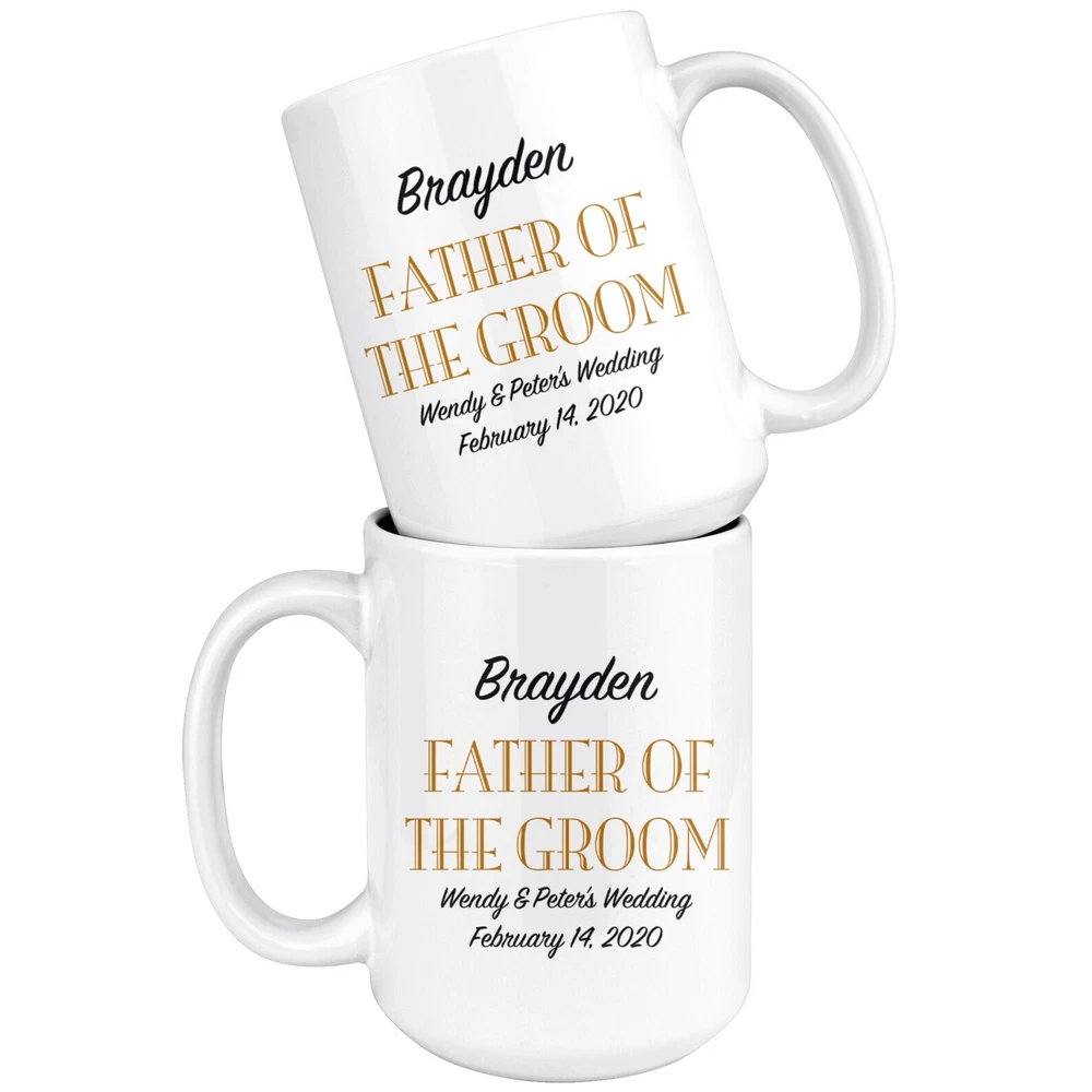 Father Of The Groom Coffee Mug Personalized Wedding Gift White Ceramic Coffee Product Details.. This high quality 11oz. ceramic white mug has a premium hard coat that provides crisp and vibrant color reproduction sure to last for years. Perfect for all hot & cold beverages. The highest quality printing possible is used. It will never fade no matter how many times you wash it. Material: 100% Ceramic. Print both sides. Dishwasher and Microwave Safe. High Gloss + Premium White Finish. Printed in the U.S.A. Personalized & Custom. We support personalized and custom mug to add custom, when placing an order, you can add notes to the "order note" in shipping address section. Also you can contact us directly via message. Shipping Info. Ready to ship in 1 to 2 business days, All products are made-to-order and proudly printed in the United States. Shipped by USPS and DHL, You will receive your order in 5-7 days. Replace & Refund. All products are defective during shipping broken, chipped will be replaced free of charge. You are not satisfied with the product, we will refund 100% money to you. If any other issues arise, please do not hesitate to message, we would be more than happy to assist you.