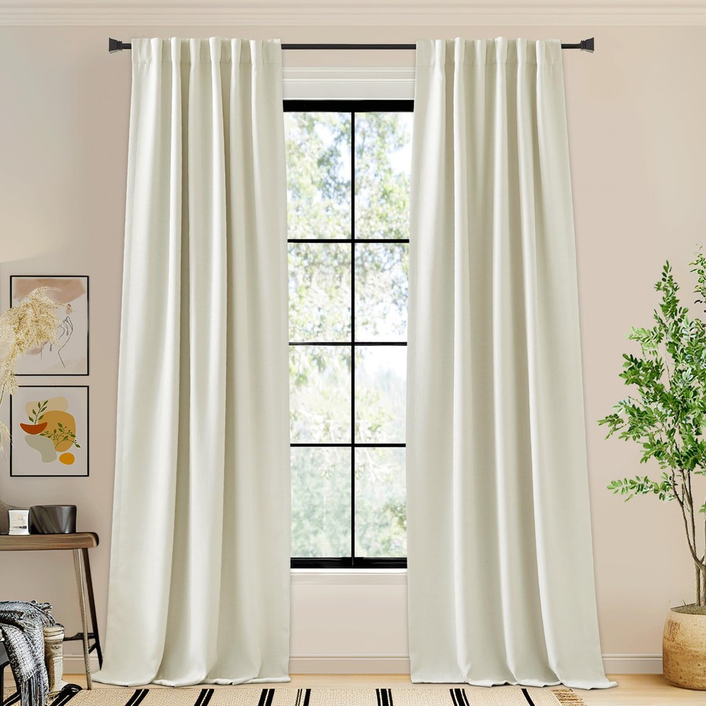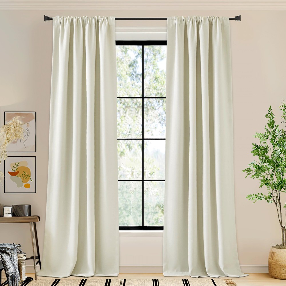 Faux Linen 120-Inch Room Darkening Bedroom Curtains with Rod Pocket & Back Tab