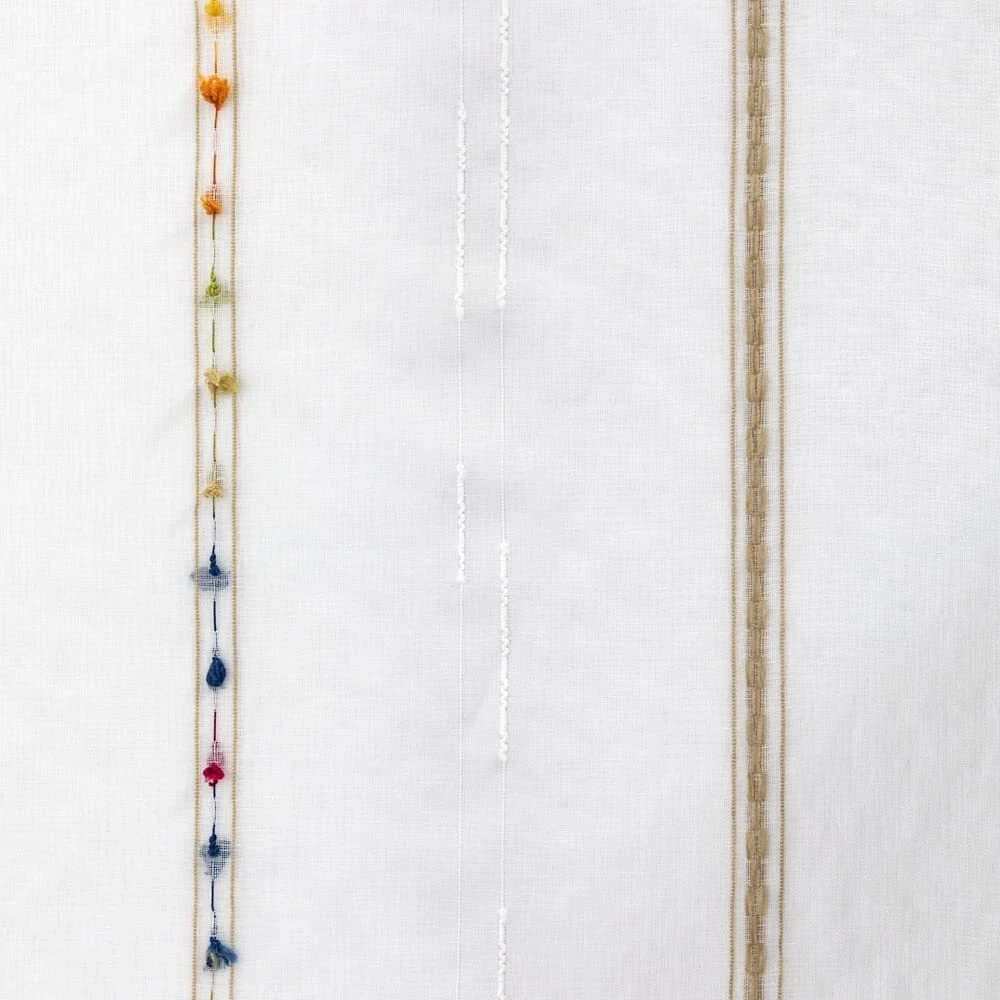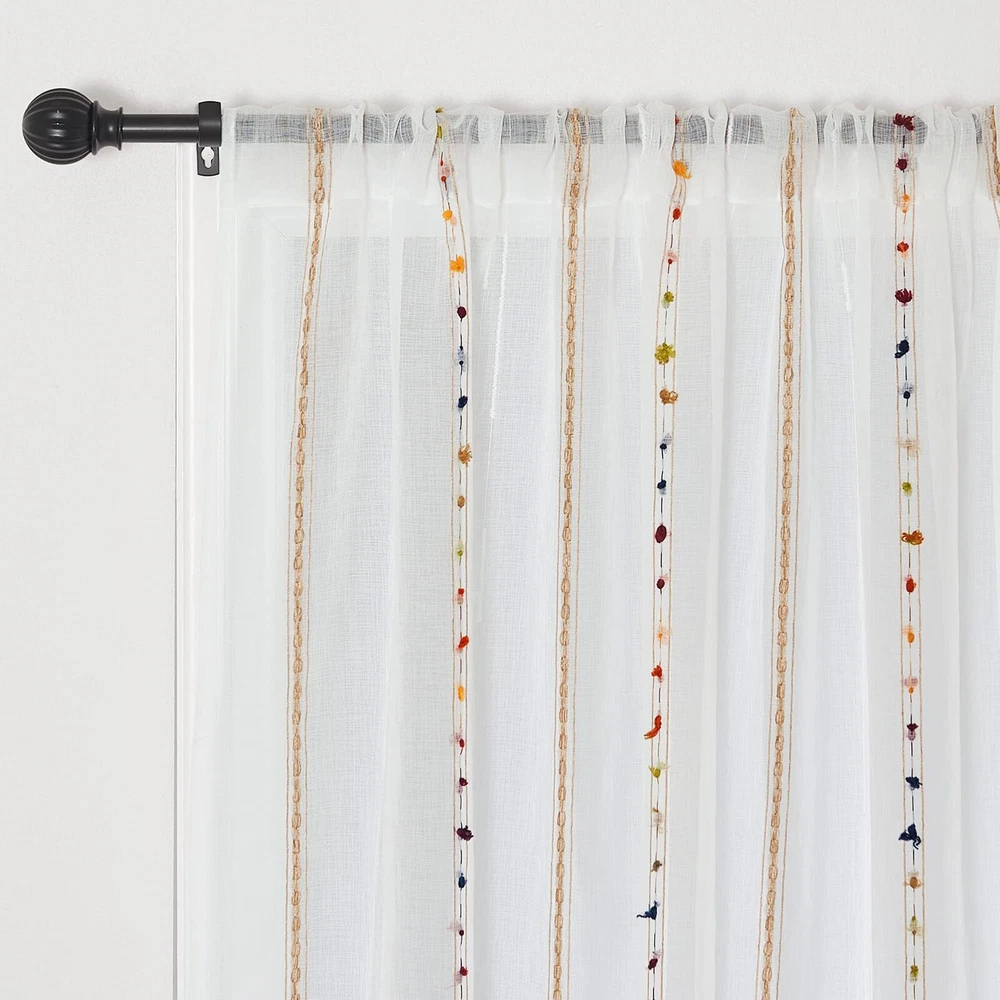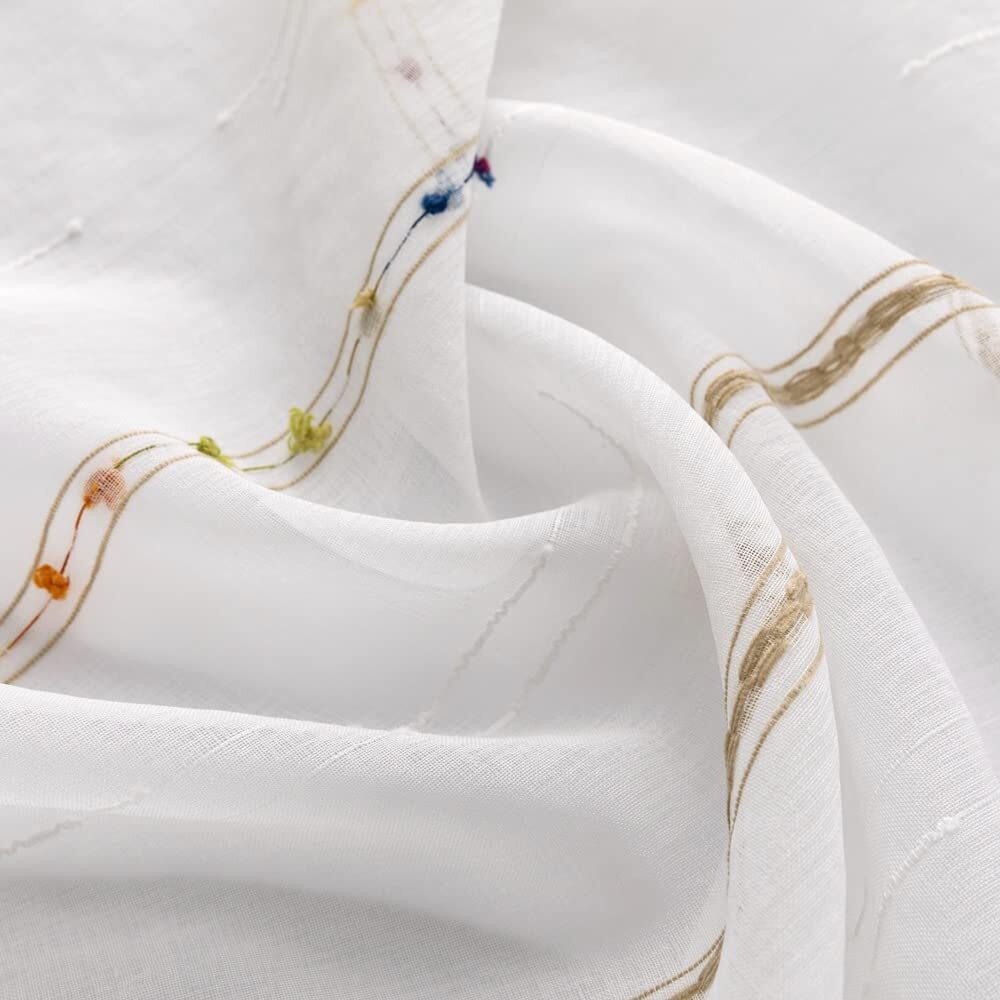 Faux Linen Stripe Pattern Sheer Curtains for Bedroom/Kids Embroidered Colorfu...