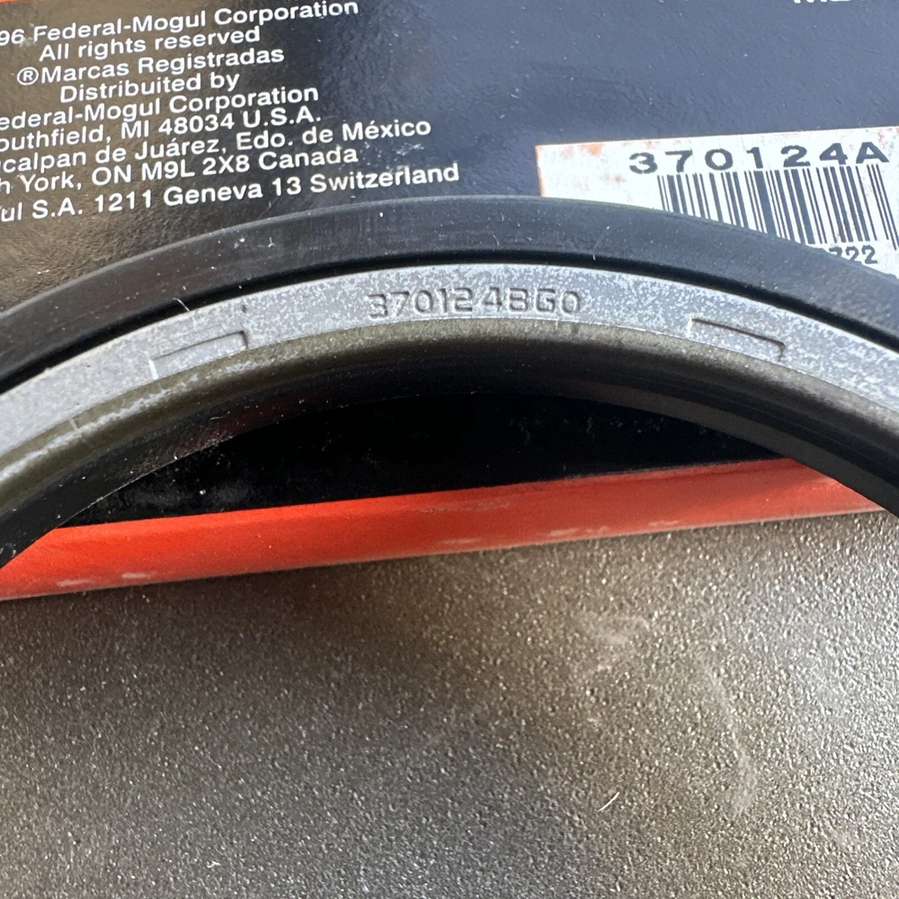 National Oil Seal 370124A Number on seal: 370124BG0 Box is dusty and has shelf wear, torn box Surplus seal Verify fitment prior to purchase Bin B2
