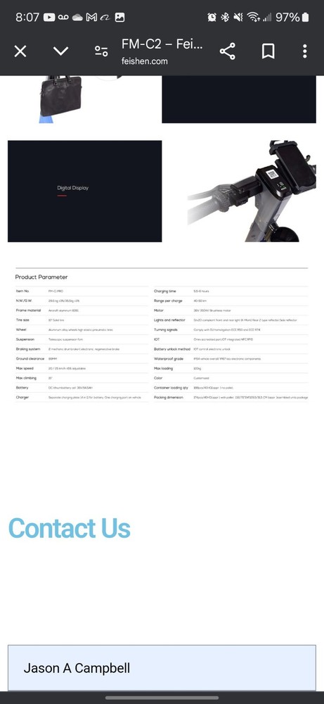 Country/Region of Manufacture: China Color: Black Brand: Feishen Features: Turn Singnals; Headlight; Brake Light; Phone Holder Type: Kick Electric Scooter Suitable For: Adults Model: FM-C1 Wattage: 350 Watts