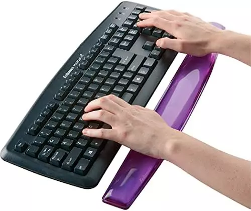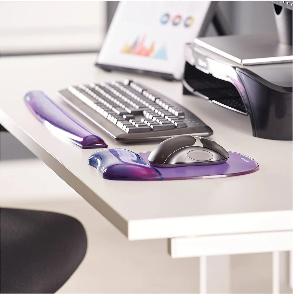 WARRANTY: Backed by 5 Year Limited Warranty Shape: Rectangular Pattern: Solid Fill Material: Silicone Style: Solid Purple Form Factor: Ergonomic Cover Material: Polyurethane Number of Items: 1 UPC: 691162895803 MPN: Not Applicable COMFORT: Soft, flexible gel conforms to the wrist Keyboard Description: Ergonomic OPTIMAL SIZE: Dimensions .62"H x 18.56"W x 231"D gtin13: 691162895803 Manufacturer: Fellowes Special Feature: Wrist Support Is Discontinued By Manufacturer: No Brand: Fellowes Global Trade Identification Number: 00077511914379 Model Name: Gel Crystals Compatible Devices: Supports wrist, relieves pressure, and provides comfort Size: Standard Is heat sensitive?: No Color: Purple Item Weight: 11.04 ounces Type: Not Applicable Country of Origin: China Product Dimensions: 18.56"L x 2.31"W Item model number: 91437 Material: Polyurethane (PU)