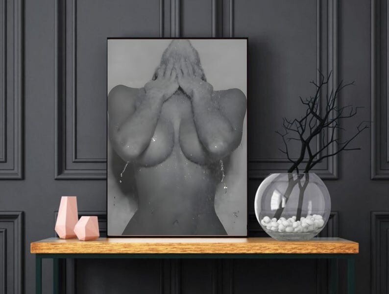 Feminist Woman in Shower Black and White Bathroom Wall Art Poster