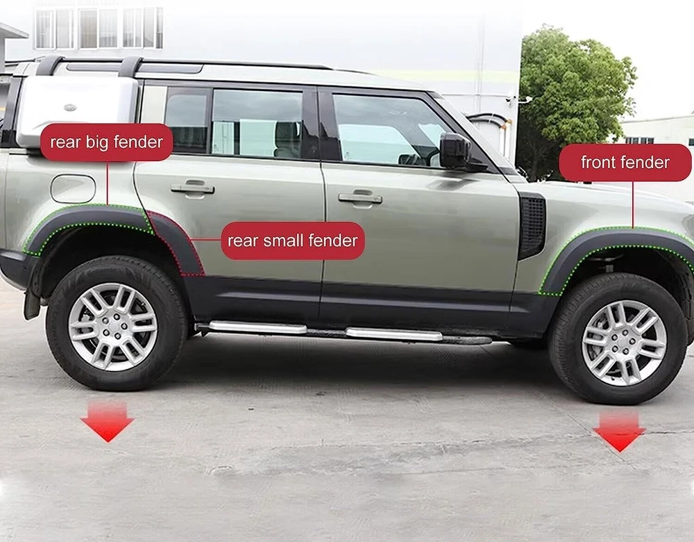 1.Product Description 【FITMENT】The fender flares with light is fit for land rover defender 110 2020-2023. Each fender flare is designed for the specific model, please check your vehicle's year, make and model. 【PREMIUM MATERIAL】Manufactured by using Injection molding technique to greatly enhance performance on collision avoidance. Material made from anti-aging polypropylene increases durability and flexibility. Ensure that the fenders are brighter and more durable. 【EASY INSTALLATION】The fender flare with light easy to install, no drilling required. Mud flaps removal are required prior to installation. 【HEAVY DUTY】Special injection molding process ensures enhanced durability, flexibility and strength for these flares to effectively withstand against cracking, warping and chalking offering a superior off-road driving experience. 【PACKAGE CONTAINS】6pcs/set fender flares, mounting instruction and hardware kit included. 2.Shipping Comments 【 1 】 Wheel Fender Trim Kit Widening Fender Fits for Defender 110 4D 2020 2021 2022 【 2 】 We will send the items within 5 Days once system confirms buyer's payment. 【 3 】 FedEx, DHL,TNT Or UPS,5-7 working days for formal order, but the specific delivery time depends on destination and so on. 3.Function Made of ABS Plastic, Will Not Be Easily Deformed, Has Good Corrosion Resistance, Protects the Car From Cratches. 4.Return Policy We can guarantee the high quality, and agree 1: 1 replace for the defective goods. 5.Pay Attention Due to the difference between monitors, the picture may not reflect the actual color of the item, but we guarantee that the item is exactly as the picture shown. If any problems with us, please feel free to contact us first, we will do our best to solve problems and provide the best services. We would be appreciate if you can contact us before feedback.