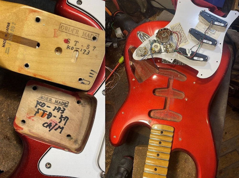 Description MADE IN JAPAN J SERIAL 1990 STRAT made to order during the EXTRAD period Original scalloped maple fingerboard and neck are C-shaped, brass nut Candy apple red basswood body with a moderate reddish lacquer finish Tuners have been replaced with GOTOH locking types PICKGUARD and assembly have been replaced with DIMARZIO INJECTOR™ STRAT® REPLACEMENT PICKGUARD. Paul Gilbert signature pickup "Injector" installed "Injector Neck DP422" on the front, "Area'67 DP419" on the center, and "Injector Bridge DP423" on the rear, Paul Gilbert specifications. Condition: Small paint chips, small scratches, aging, weather checking, etc. (see image) Spring cover missing Good playing condition! The neck and rods are in good condition. Weight: 3.9kg Frets: 60% remaining of the height Fender Tweed Hardcase included Condition: B+: No problems with normal use Shipping Shipping by FedexorEMS (international express mail service, with Tracking and Insurance, handling cost). Fedex takes 1 week, EMS takes 1-2 weeks. We will ship your item within 5 business days with carefully packed. Returns Money back guarantee within 30 days. We offer 30 days money back guarantee for defective products. The buyer must pay for returning it back to us. When there were defects in a item, please contact us. About Us If you have any problem, please contact us. Your satisfaction is important to us. We have results that I sold of tens of thousands of by Internet sale. We have pride ourselves in the Quality of items we offer. All our items has been checked by technician. As every seller dealing with pre-owned branded items in Japan we have as well license from local government to offer services of this kind. We are officially registered as legal business and we have to comply with all rules and regulations including tax requirements from the Japanese government. International Buyers - Please Note: Import duties, taxes and charges are not included in the item price or shipping charges. These charges are the buyer's responsibility. Please check with your country's customs office to determine what these additional costs will be prior to bidding/buying. These charges are normally collected by the delivering freight (shipping) company or when you pick the item up - do not confuse them for additional shipping charges. We do not mark merchandise values below value or mark items as “gifts” - US and International government regulations prohibit such behavior.