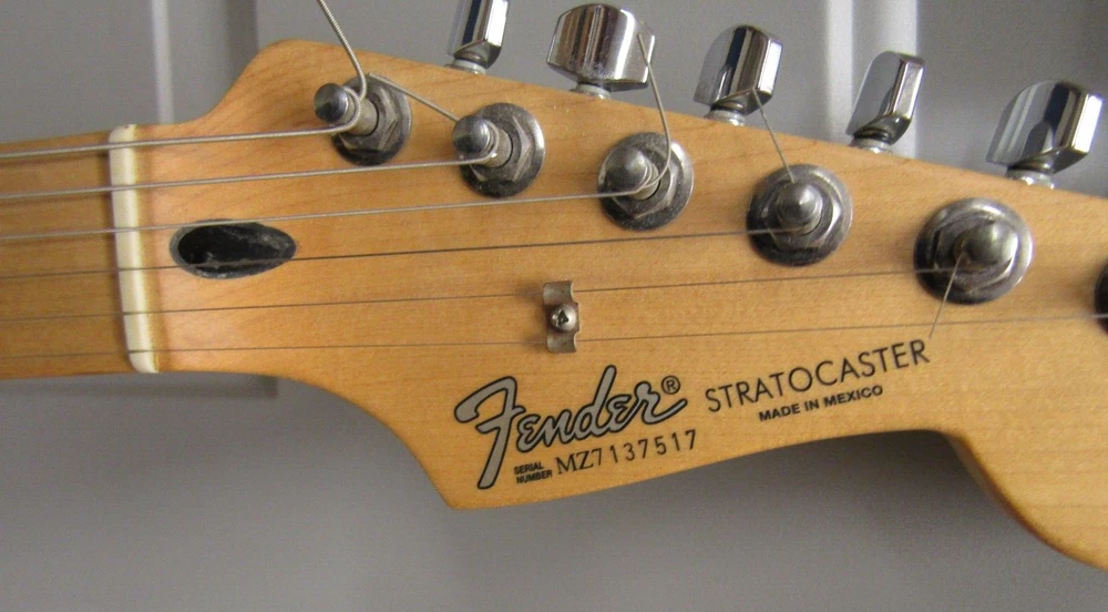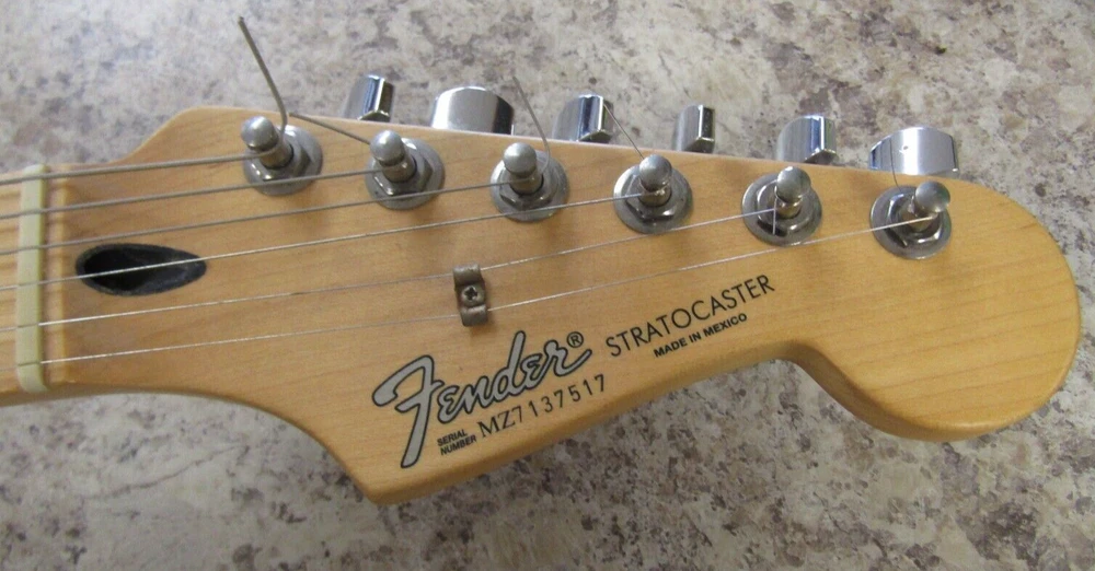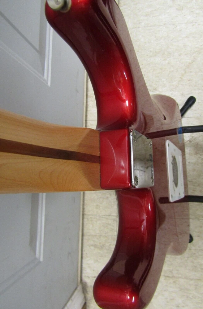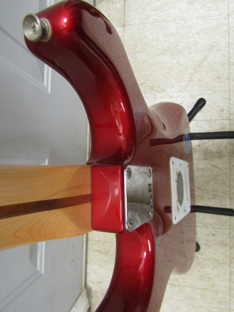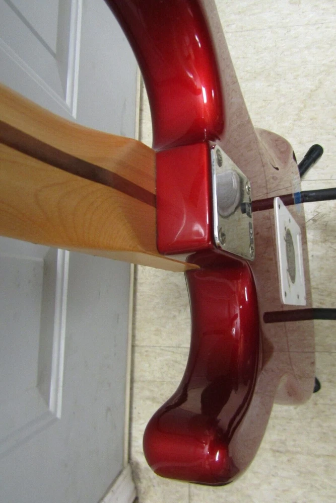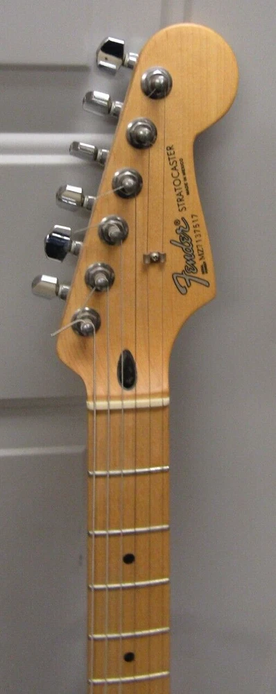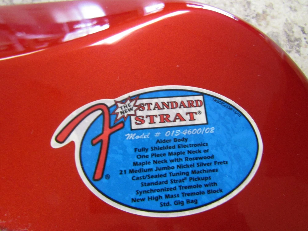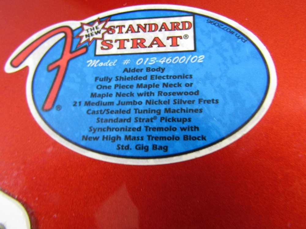 in good condition as pictured - stand not included -- neck is Not damaged it is a reflection Product Specs Body Alder Body Finish Polyester Body Shape Stratocaster® Bridge 6-Saddle Vintage-Style Synchronized Tremolo Bridge Pickup Standard Single-Coil Strat® Color Chrome Red Commodity Code 9207901000 Configuration SSS Control Knobs White Plastic Controls Master Volume, Tone 1. (Neck Pickup), Tone 2. (Middle Pickup) Country Of Origin MX Dimensions 5.00x15.00x42.00 IN Fingerboard Maple Fingerboard Radius 9.5" (241 mm) Fret Size Vintage Hardware Finish Chrome Middle Pickup Standard Single-Coil Strat® Model Name Standard Stratocaster® (Upgrade) (2006-2008), Maple Fingerboard, Chrome Red Neck Finish Satin Urethane Neck Material Maple Neck Pickup Standard Single-Coil Strat® Neck Shape Modern "C" Number of Frets 21 Nut Material Synthetic Bone Nut Width 1.650" (42 mm) Orientation Right-Hand Pickguard 3-Ply White Pickup Configuration SSS Pickup Switching 5-Position Blade: Position 1. Bridge Pickup, Position 2. Bridge and Middle Pickup, Position 3. Middle Pickup, Position 4. Middle and Neck Pickup, Position 5. Neck Pickup Position Inlays Black Dot Refinement Neck Material Maple Scale Length 25.5" (64.77 cm) Series Standard String Nut Synthetic Bone Strings Nickel Plated Steel (.009-.042 Gauges) Tuning Machines Fender®/Ping® Standard Cast/Sealed Tuning Machines