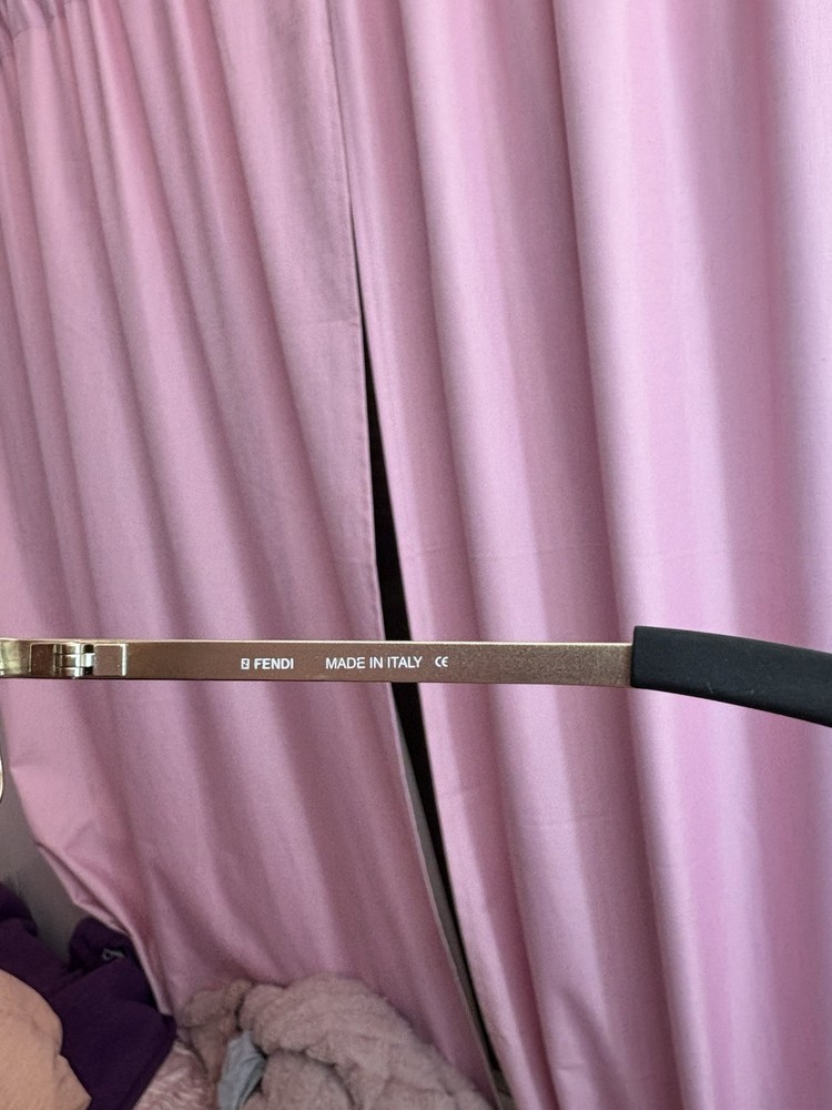 The Fendi Glasses are a luxurious pair of women's sunglasses crafted in Italy. They feature a stylish brown metal frame with glass lenses, embodying a designer theme synonymous with the Fendi brand. These pre-owned sunglasses exude sophistication and elegance, making them a coveted accessory for any fashion-forward individual seeking high-quality eyewear. Perfect for elevating any ensemble with a touch of designer flair, the Fendi Glasses are a statement piece that reflects the brand's reputation for luxury and style. No box